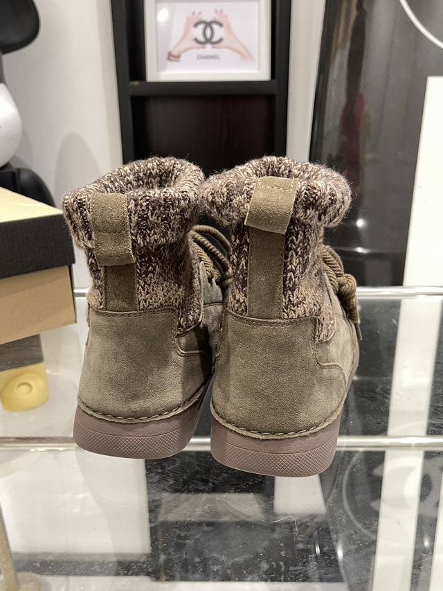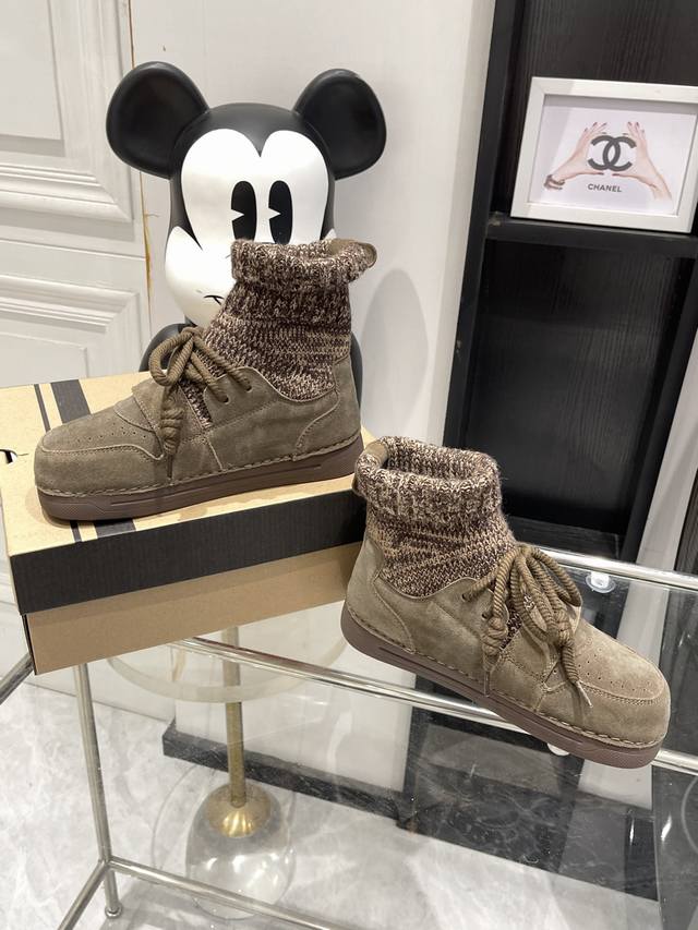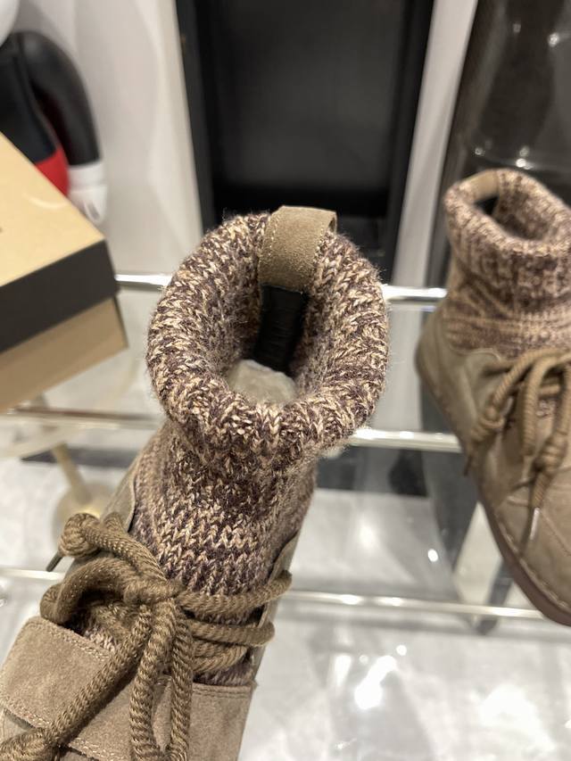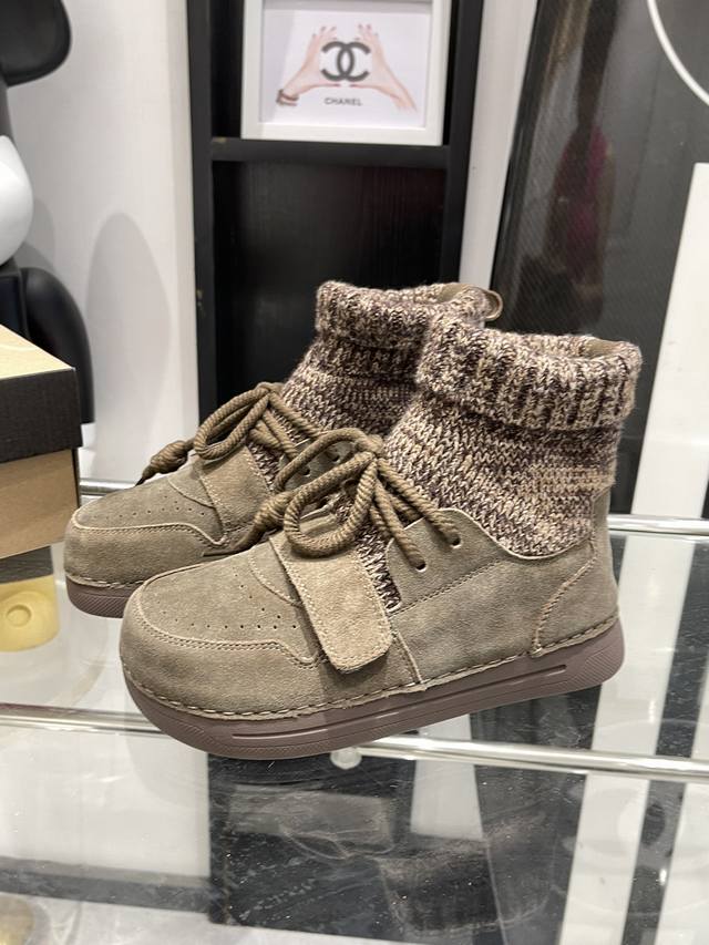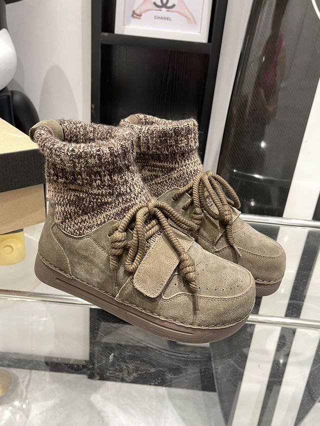 毛线拼接丑萌靴子给征服!! 也太好看了 靴子采用方圆头的设计,不挑脚型 毛线针织与皮面拼接,独特有型 鞋面粗绳系带,调节松紧很方便 冬季也是暖暖哒- :35-4
