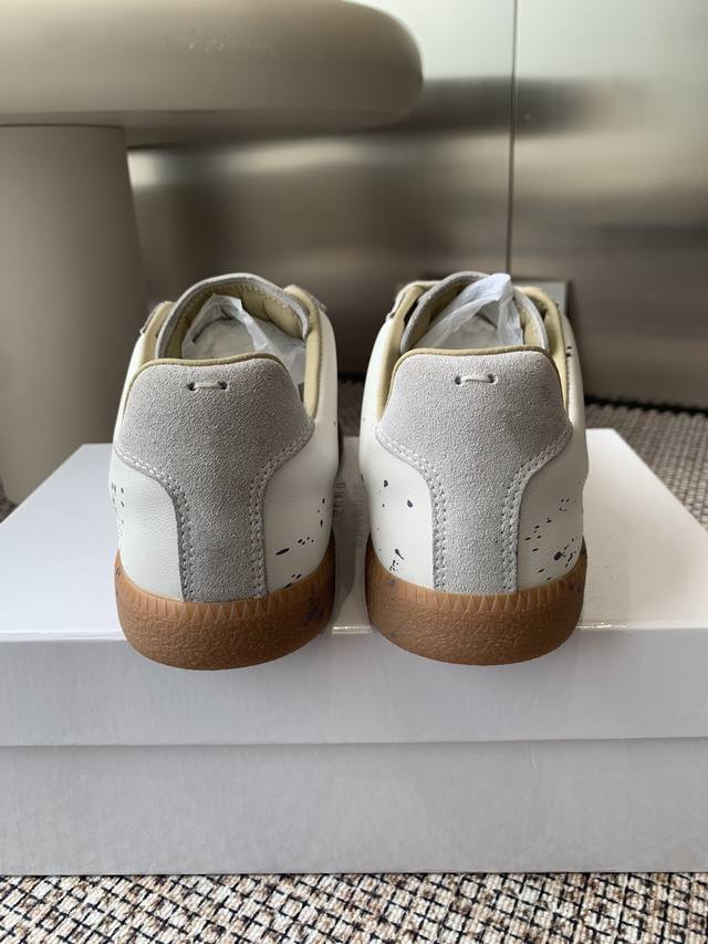 鬼才设计师品牌一个轻奢品牌 这一款德国训练鞋延续了经典的T形真皮拼接设计 经过设计团队多次的精心改良 柔软细腻的特点与时尚潮流的布面相结合 使其既有超高的柔软舒适度 又同时保持不错的透气性能~舒适与质感并行 轻松驾驭四季穿着任何搭配