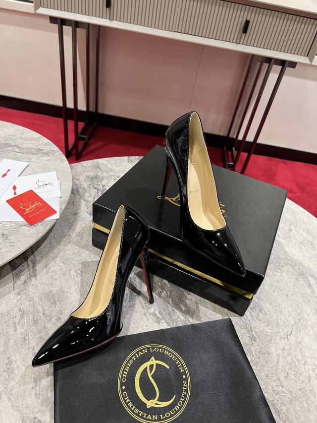 经典kate系列10厘米高跟鞋,亮面漆皮带来明亮光泽,10厘米跟高挑战冷艳风格 闪耀魅惑红底,抒写香榭浪漫!