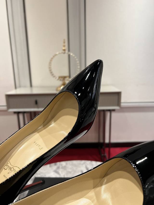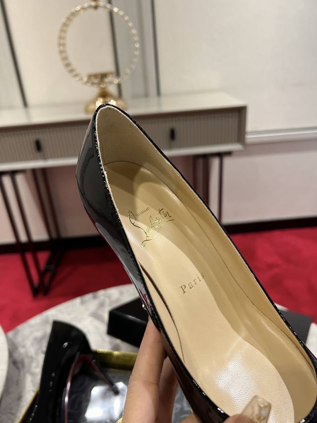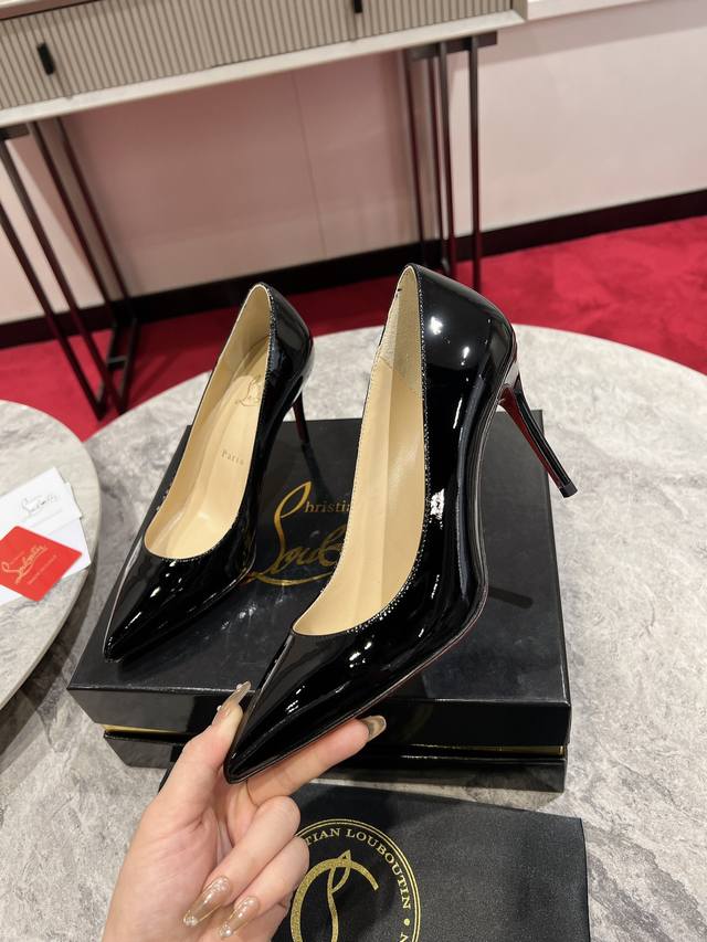 经典kate系列10厘米高跟鞋,亮面漆皮带来明亮光泽,10厘米跟高挑战冷艳风格 闪耀魅惑红底,抒写香榭浪漫!