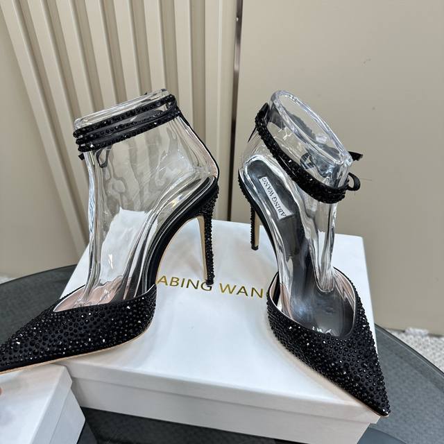 爆款abing Wang高跟鞋 推出了这款散发着迷人魅力的单品。美丽刑具,它以漆皮面料制作于设有深鞋口的尖头鞋身端庄典雅。 鞋底:真皮 鞋面:丝面,水钻 码数: