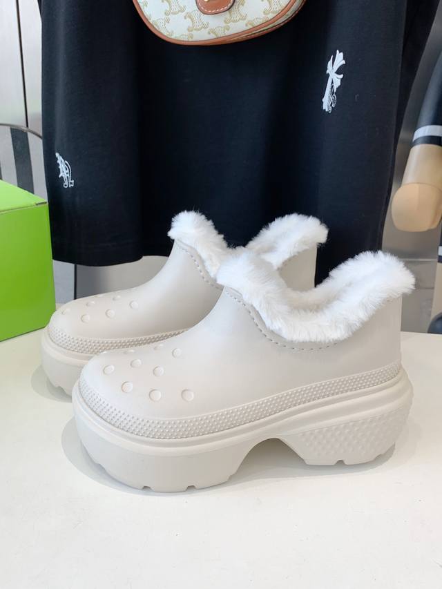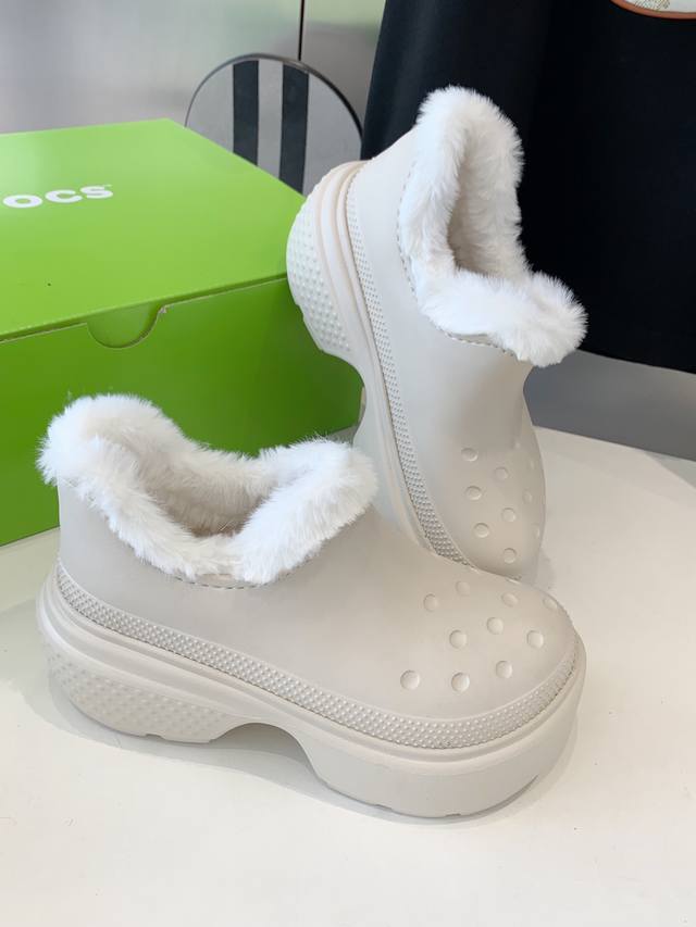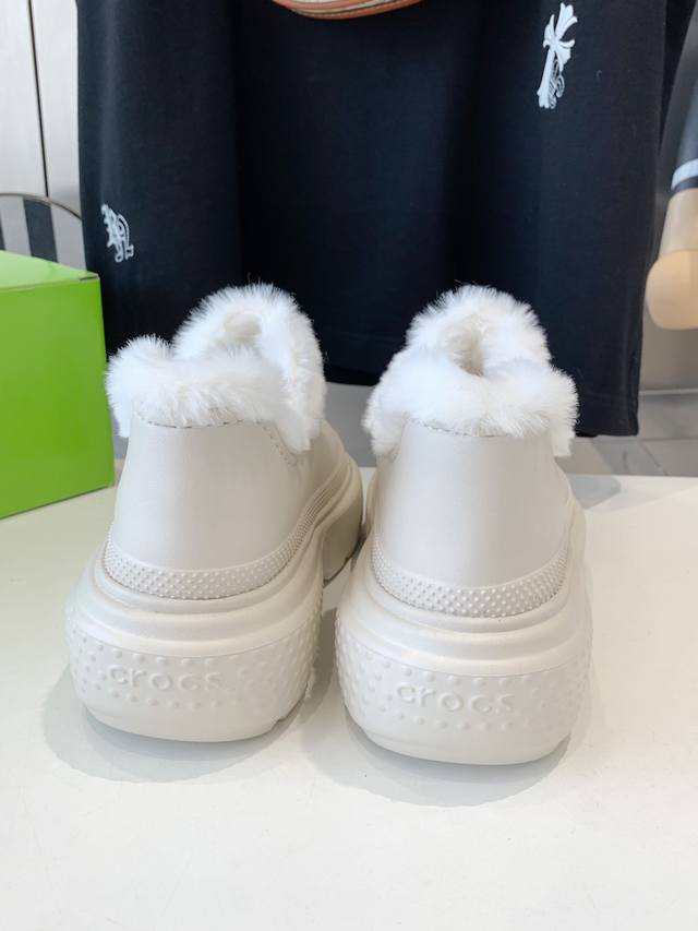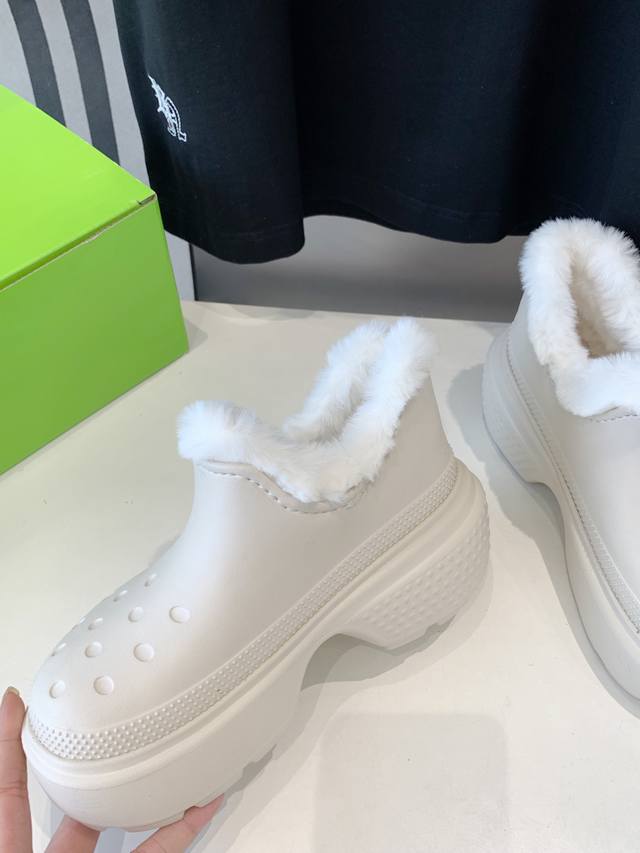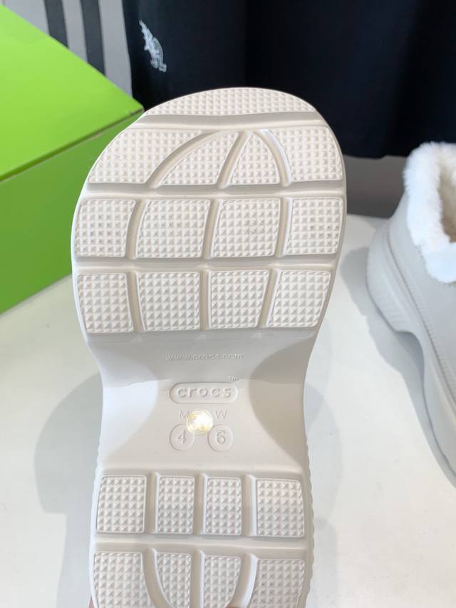 / 独家 Crocs 雪屋短靴上新了喽,跟高5.5厘米,内里绒,时尚又保暖# Crocs 洞洞鞋# 白鹿同款~雪屋蓬蓬暖靴洞洞雪地靴女防滑防水加绒加厚一脚蹬棉靴35