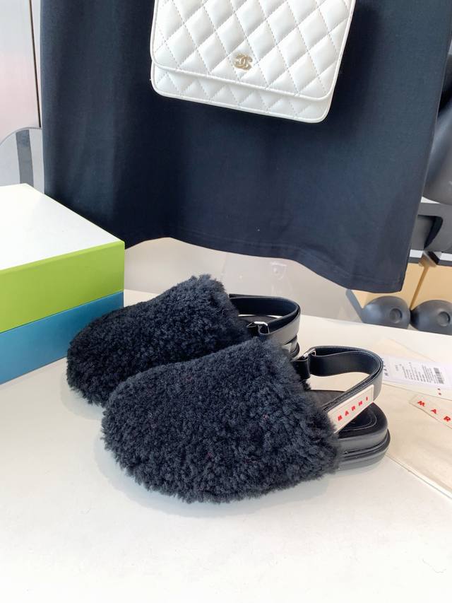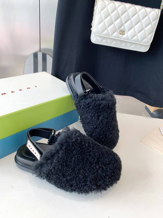 可爱毛毛款 一如既往纯粹的奢华感是marni所致力打造的风格 凉鞋的透气结构搭载日系风格,蠢萌,复古范儿很足。