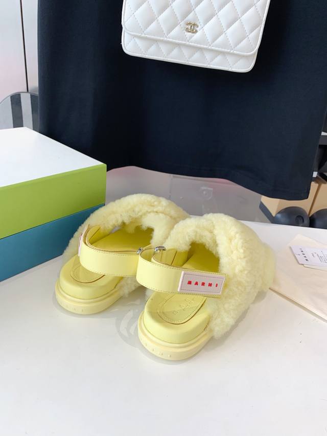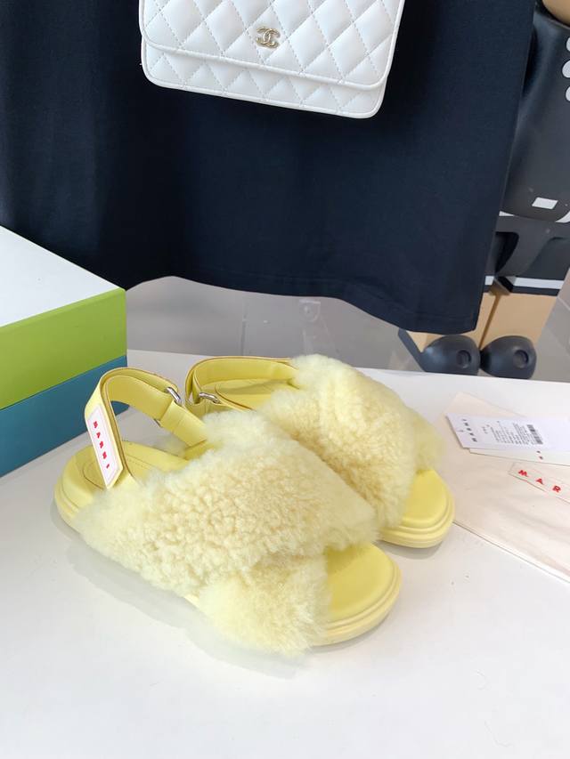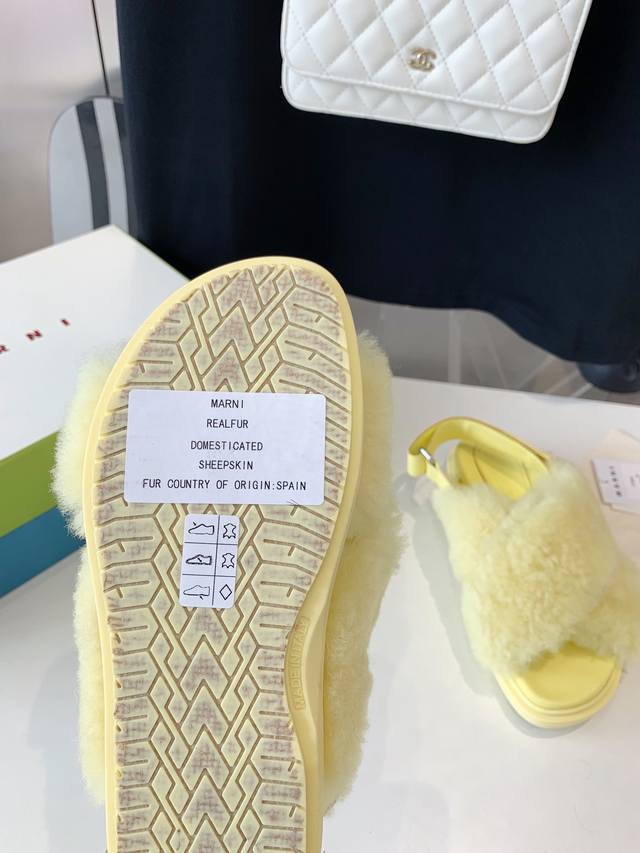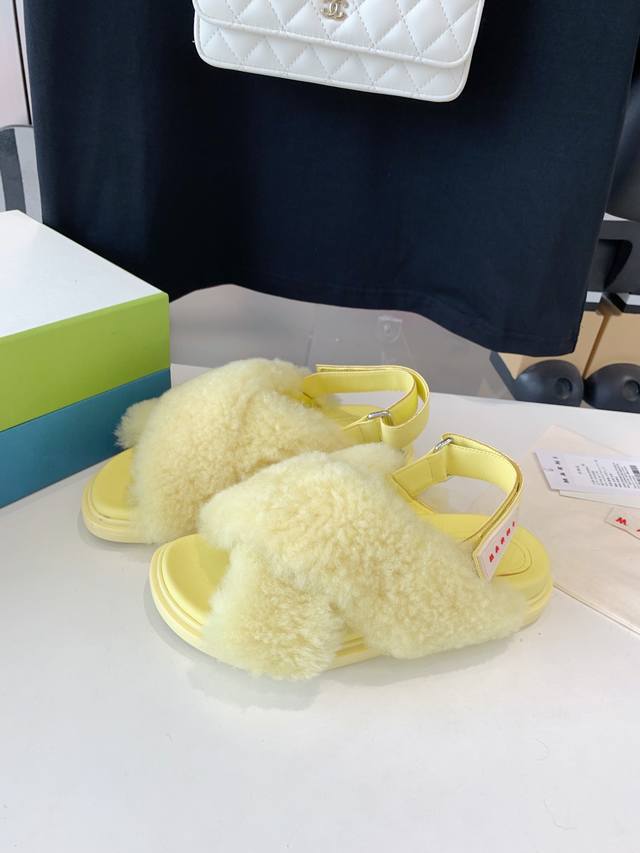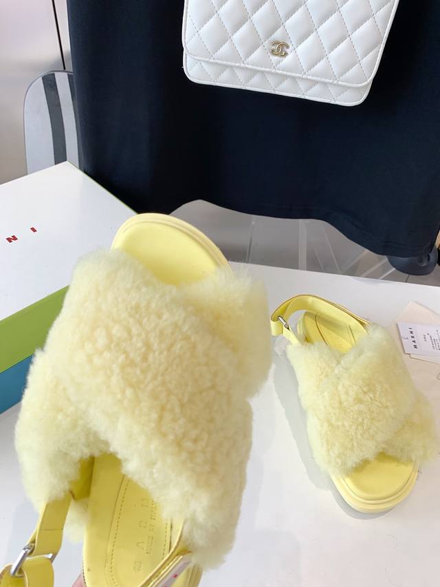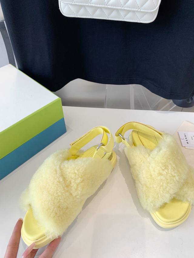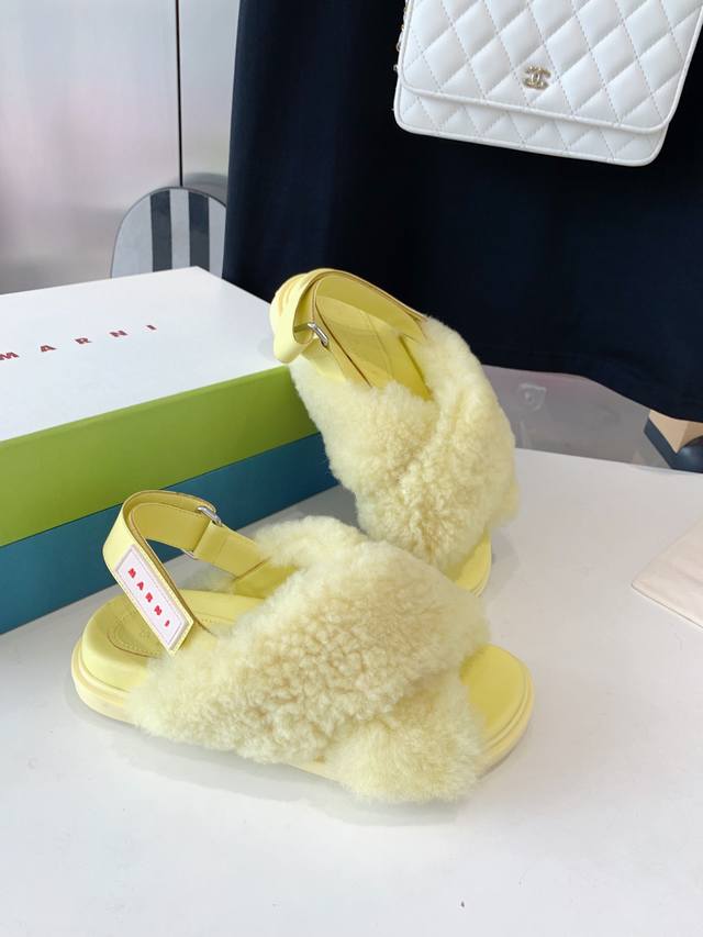 可爱毛毛款 一如既往纯粹的奢华感是marni所致力打造的风格 凉鞋的透气结构搭载日系风格,蠢萌,复古范儿很足。