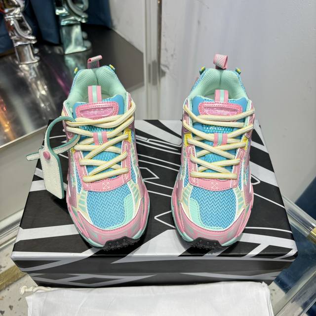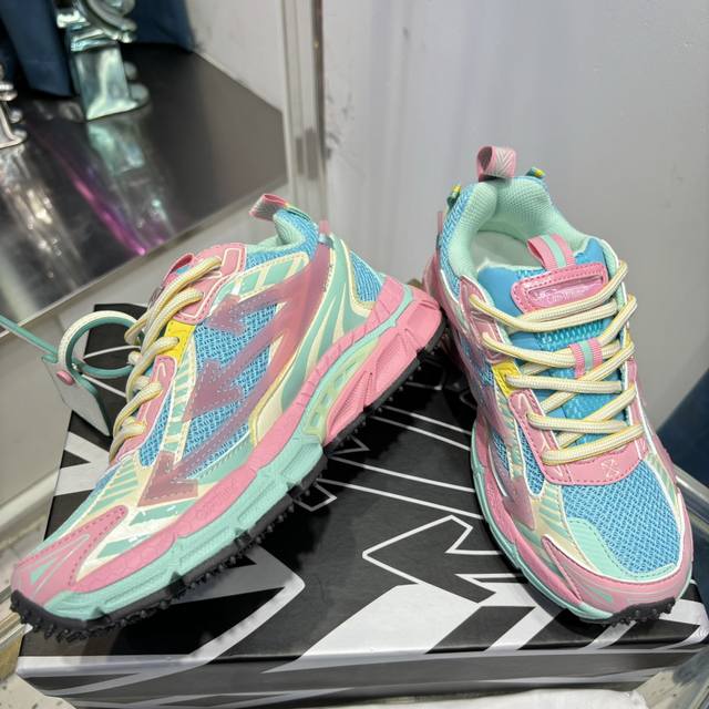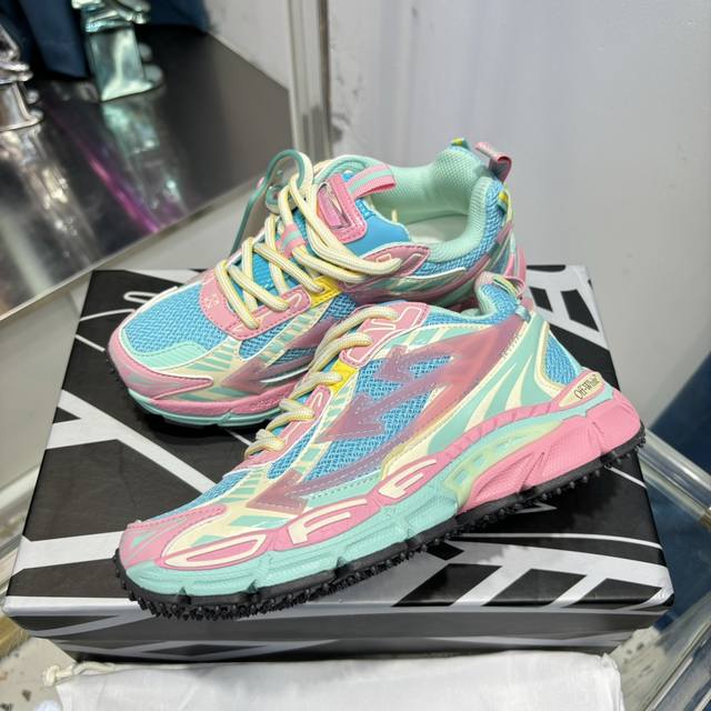 新款运动鞋将经典复古老爹鞋细节设计更加夸张化,并将标志性箭头设计置于显著位置。除此之外,整个系列的色