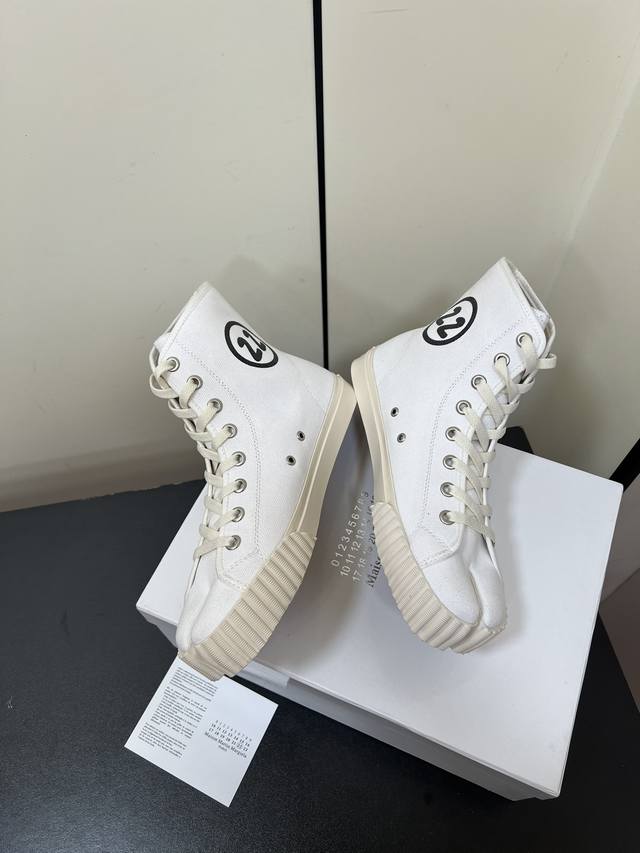 男款10Maison Margiela Tabi分趾高帮帆布鞋 Mm6近两年已经成为时尚新宠 备受各大博主关注 鞋面采用进口帆布 原版开发大底 码数:35-44
