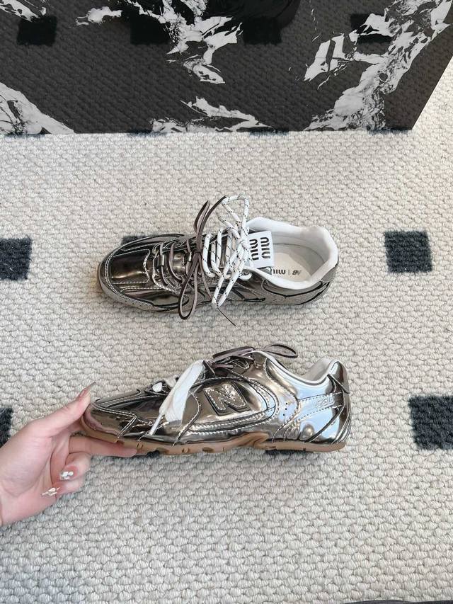 男20代购级别miumi*&N*联名款新色上新 美拉德配色德训鞋运动鞋miumiu&Nb530最新款新色上新!特别piu亮的银色渡边设计!经典的网面拼接皮面设计