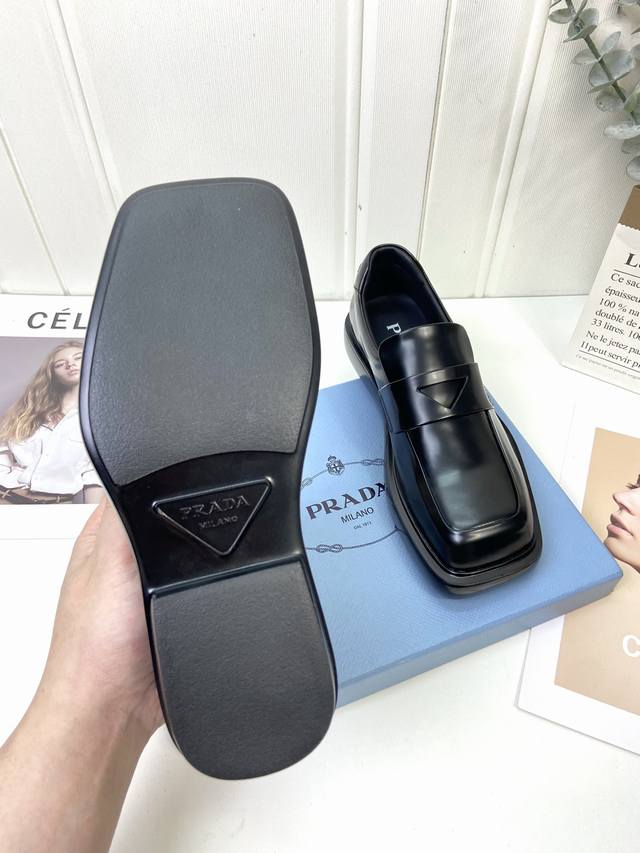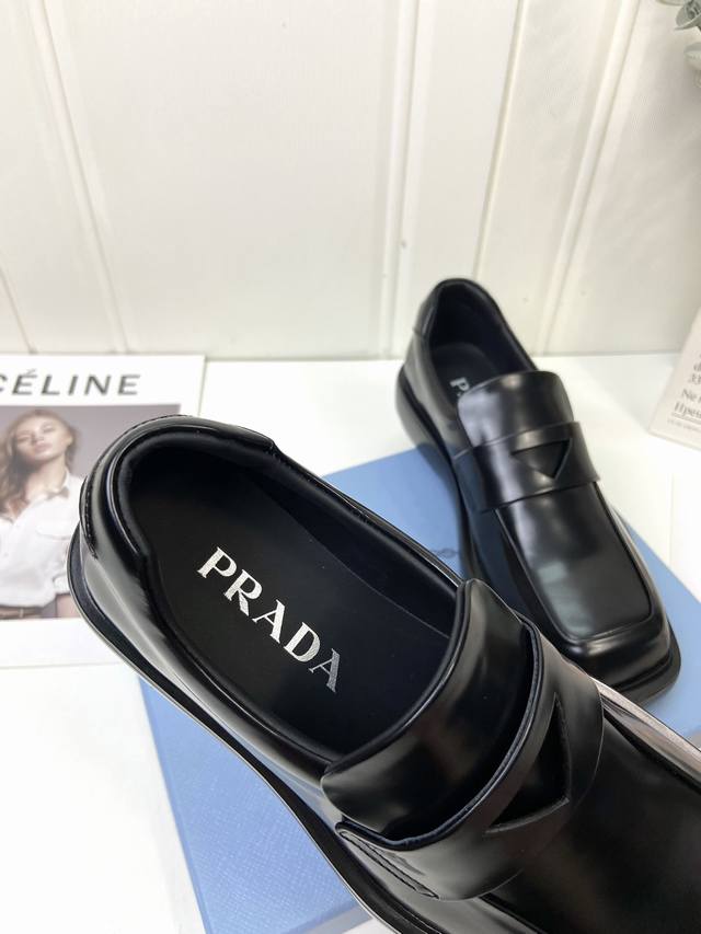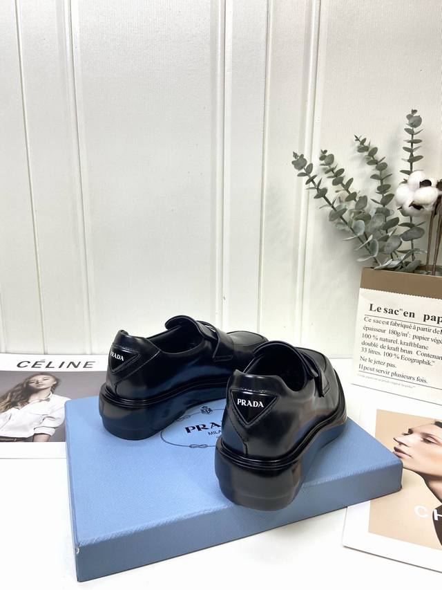 prad*中性风厚底乐福鞋 男女同款 上脚酷帅有型 后跟三角标的设计很精致
