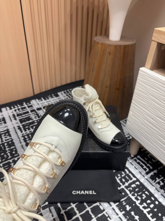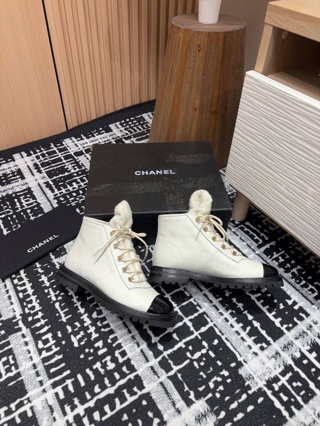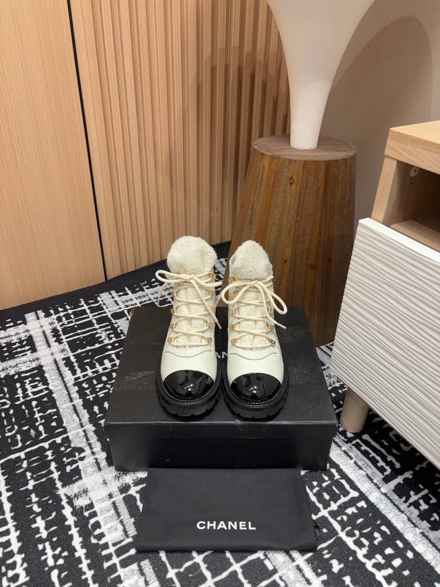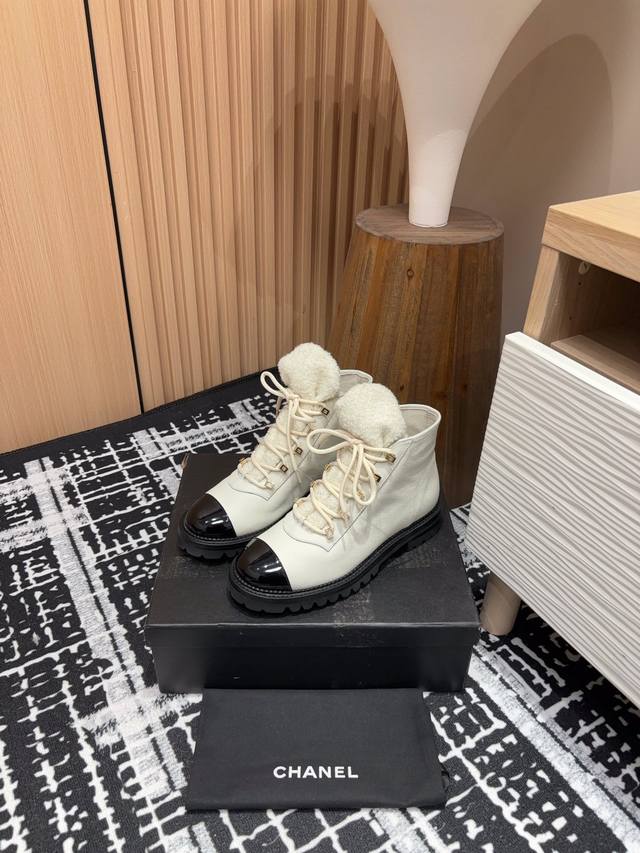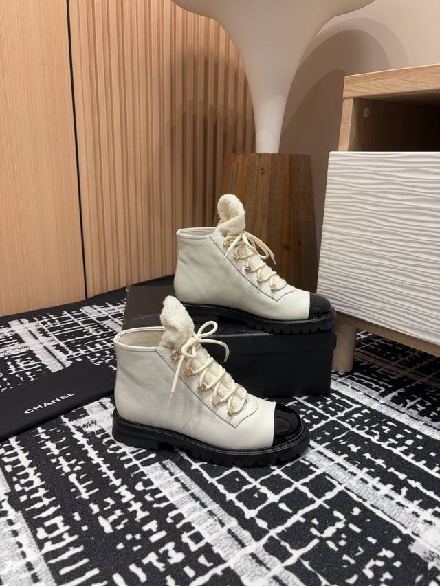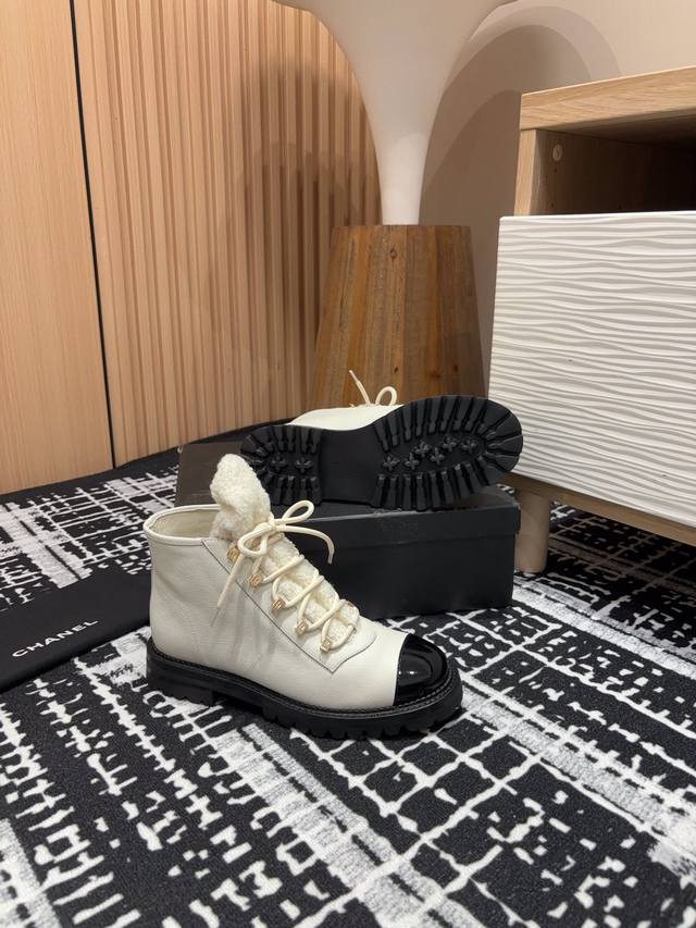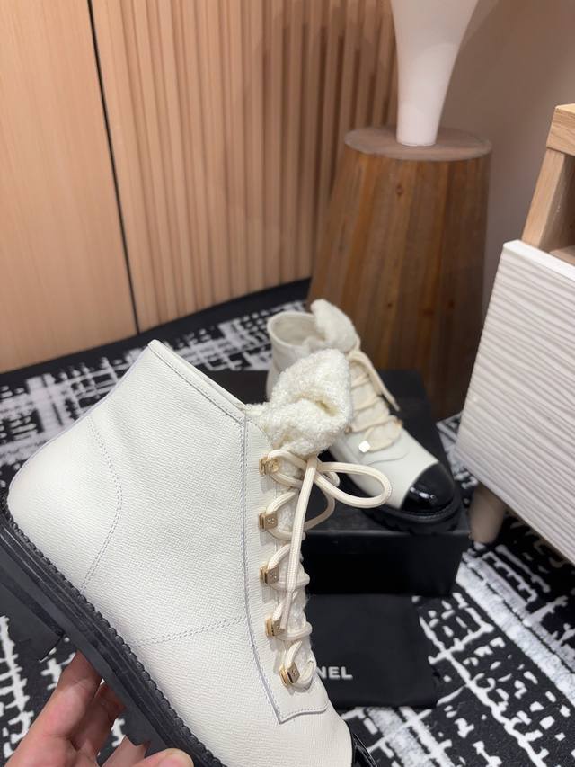 24Ss秋冬新款鞋舌毛系带马丁靴