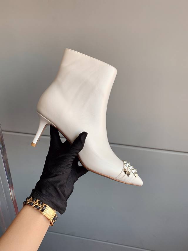 短靴 长靴 Valentin*新款尖头铆钉靴 鞋面牛皮 纯手工镶嵌铆钉 内里垫脚羊皮 意大利真皮大底 跟高6.5Cm 尺码35-39 40定做