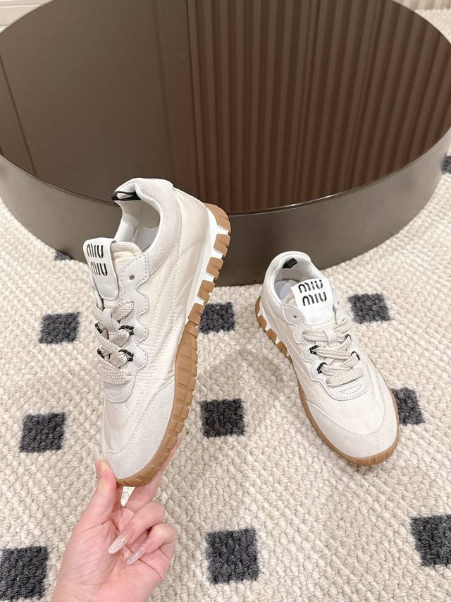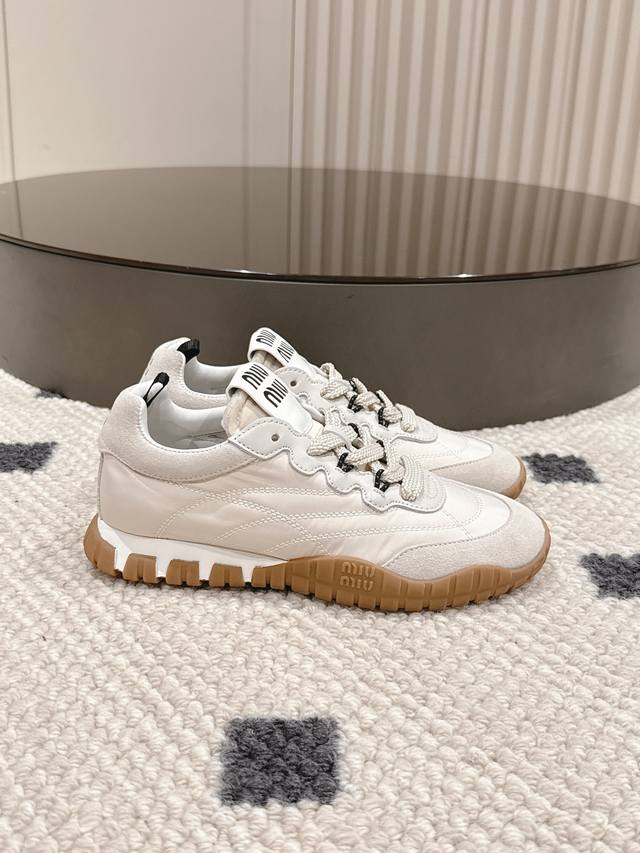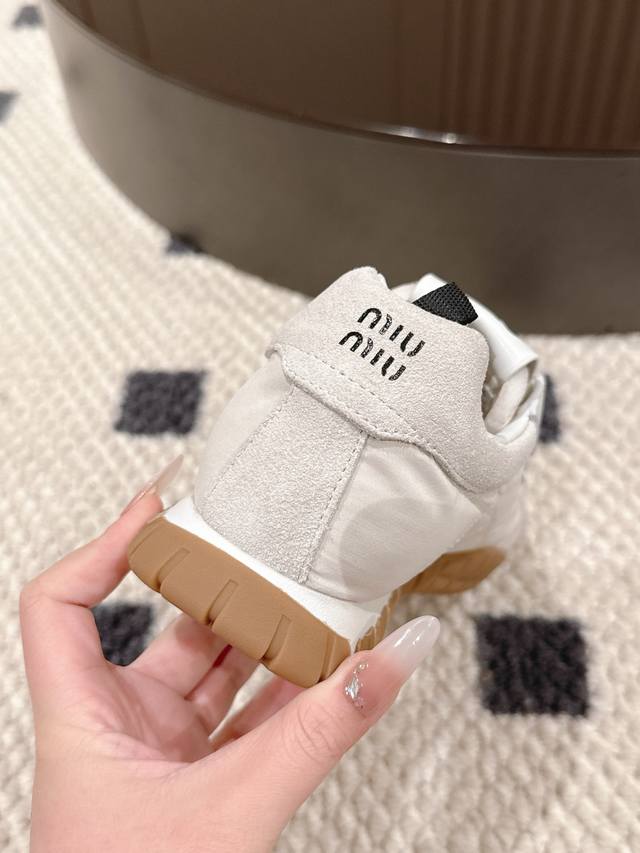 Miu Miu25Ss 出道即巅峰的,真的百搭又吸睛~Miumiu25Ss德训鞋,Miu Miu风格融于此款厚底帆布运动鞋的简约线条,简约又不简单!别致徽标饰于鞋舌与背面,点缀复古设计,平添标志性元素!厚底设计定义前卫的现代风格,超轻超软,脚感也很舒服!穿着去跑步都可以的休闲鞋!