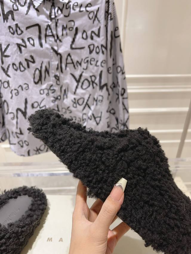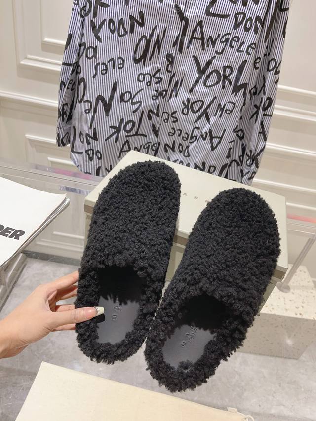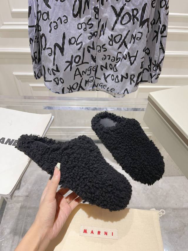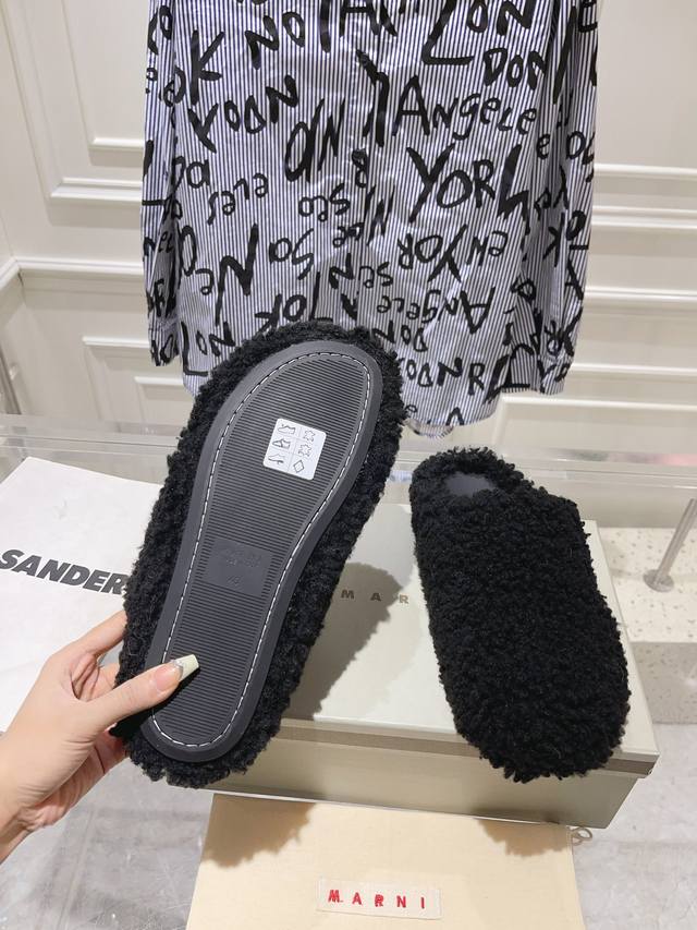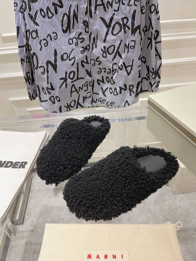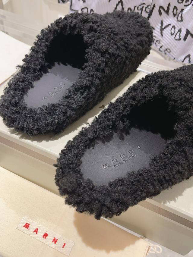 秋冬新款marni羊毛拖。鞋面冰岛羊卷毛内里小羊皮垫脚小牛皮 原版开发 原版大底 情侣款码数:35-46