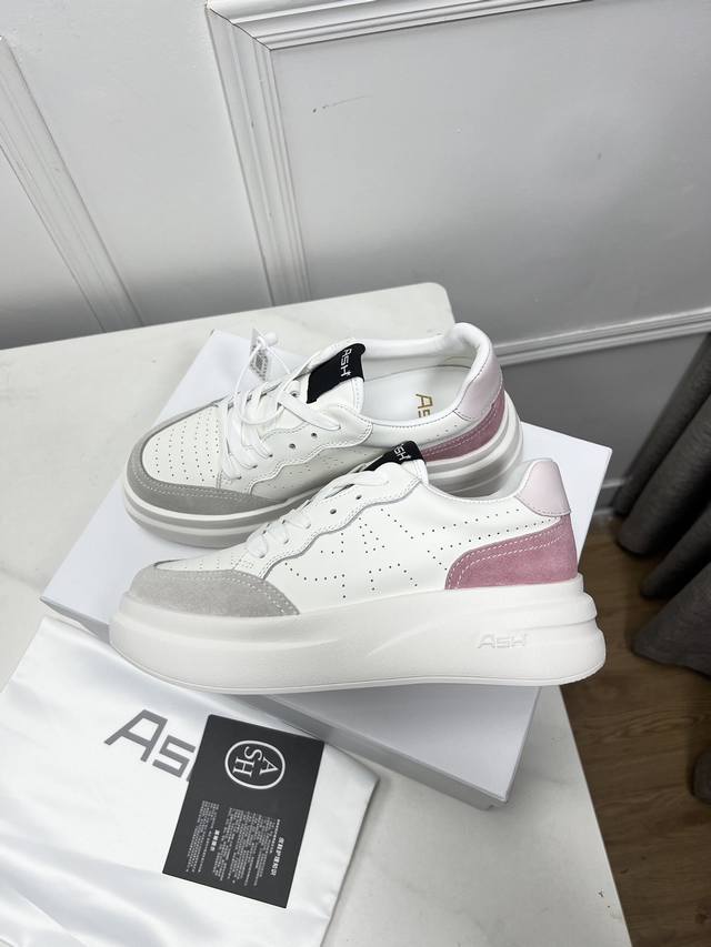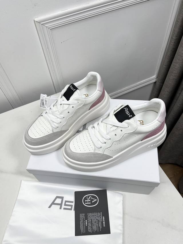 系带 Ash Iron小白鞋ash的小白鞋真的太百搭了,上脚舒适轻盈。高弹eva的5Cm增高大底,柔软q弹的脚感,鞋头加密透气孔,透气性也很好,难怪很多明星博主都pick Ta,真的是很心动了。码数:35-45 女40男45定制不退换