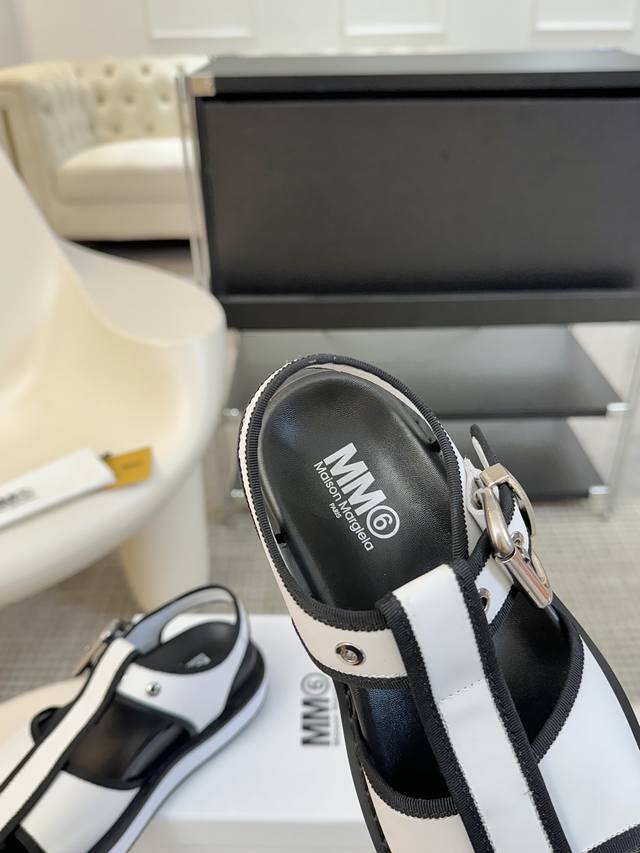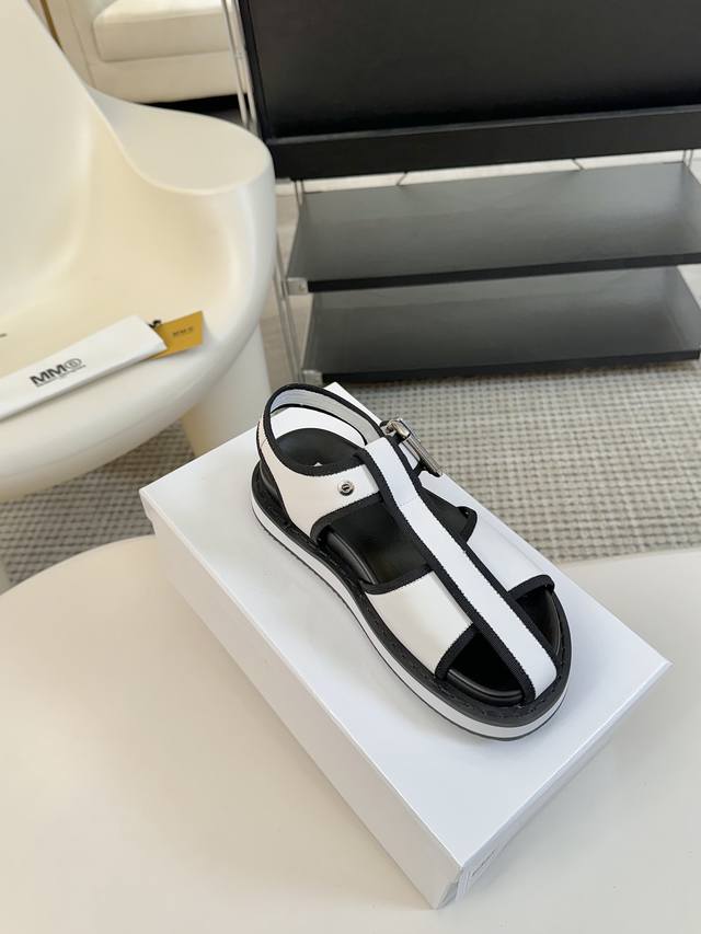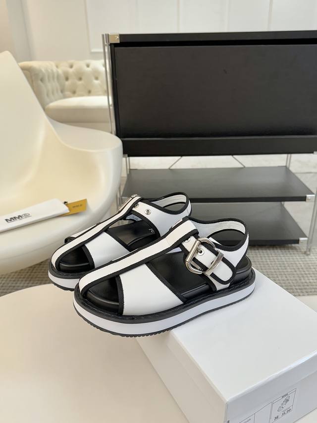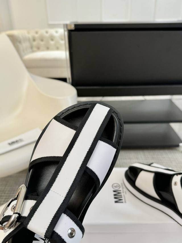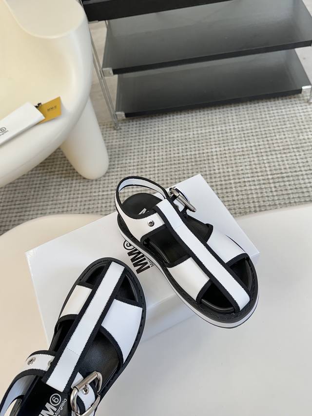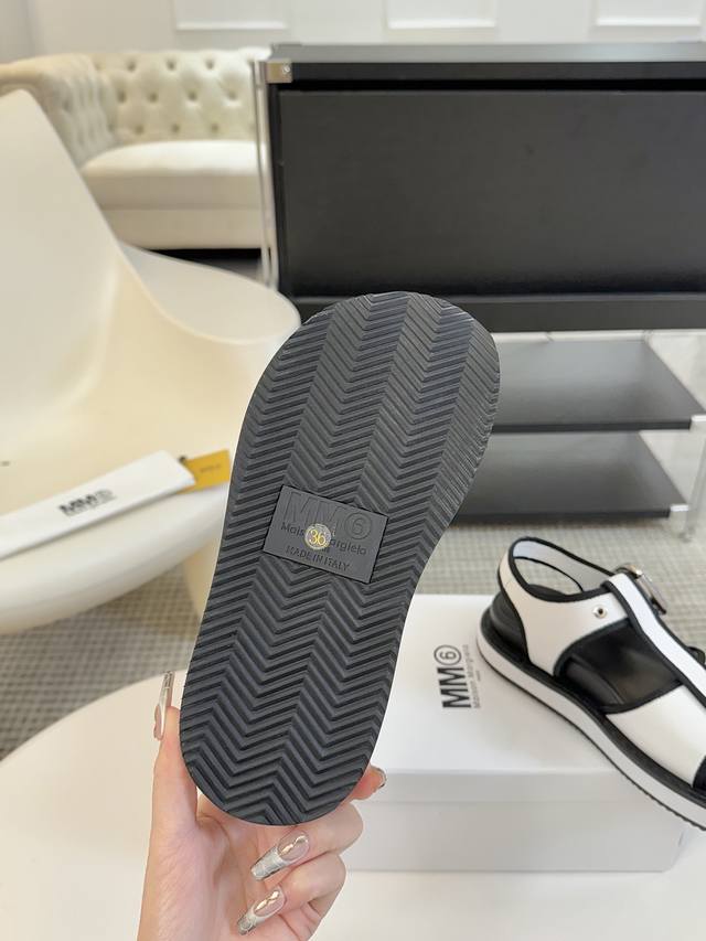 Mm6厚底罗马凉鞋 225 Maisonmargiela !大热时尚风 慵懒风系列 Mm6 Maison Margiela的实验性从功能主义的解构美学出发,意想不到的玩味和前卫演绎,多变的简约风格剪裁,呈现创意无比的时装实验造型 厚底设计 弹力材质舒服细腻 反叛又低调的mm6 Maison Marqiela再出新款,以实用主义为设计核心的时髦鞋履