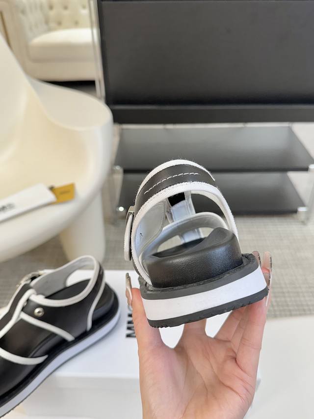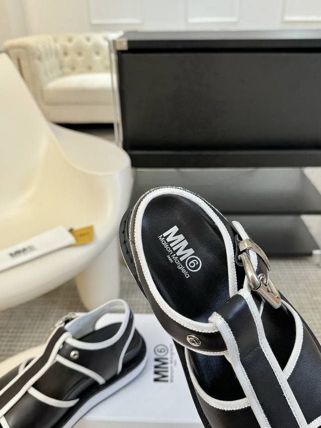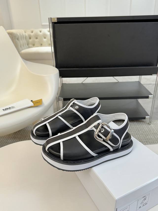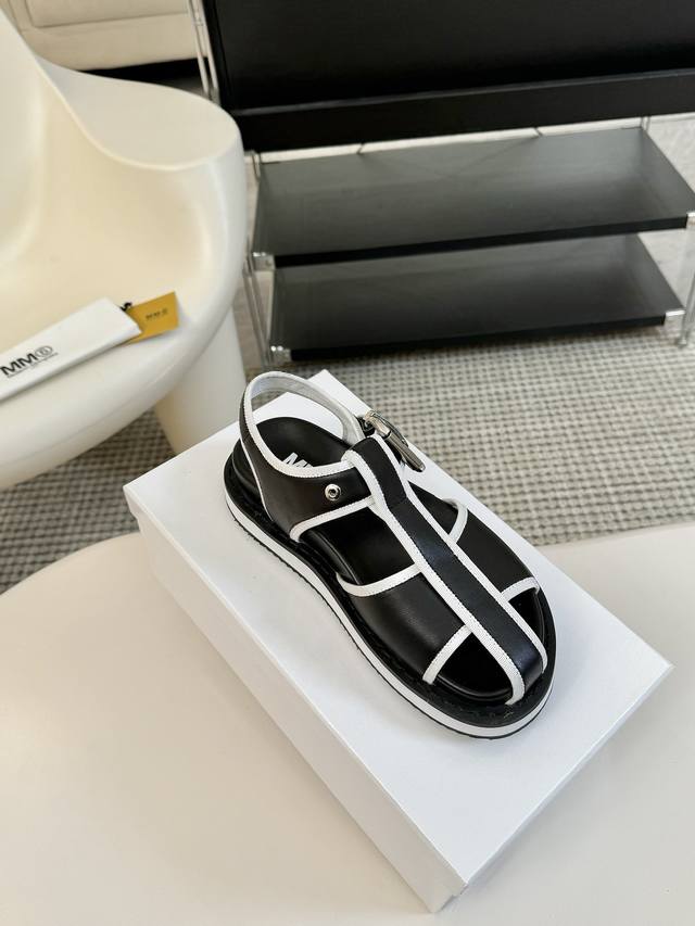 Mm6厚底罗马凉鞋 225 Maisonmargiela !大热时尚风 慵懒风系列 Mm6 Maison Margiela的实验性从功能主义的解构美学出发,意想不到的玩味和前卫演绎,多变的简约风格剪裁,呈现创意无比的时装实验造型 厚底设计 弹力材质舒服细腻 反叛又低调的mm6 Maison Marqiela再出新款,以实用主义为设计核心的时髦鞋履