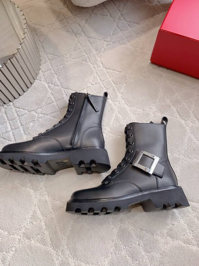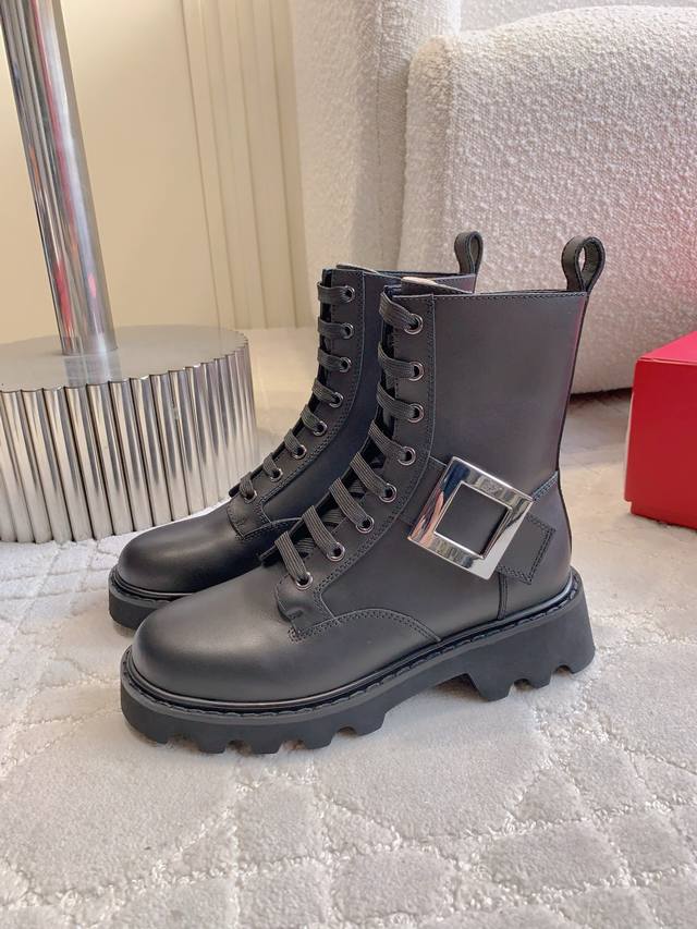 Roger Vivie*新款方扣厚底系带短靴 经典方扣装饰奢华大气 经典百搭款 轻便舒适不厚重