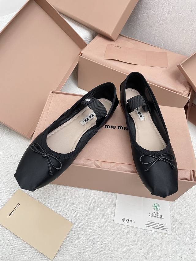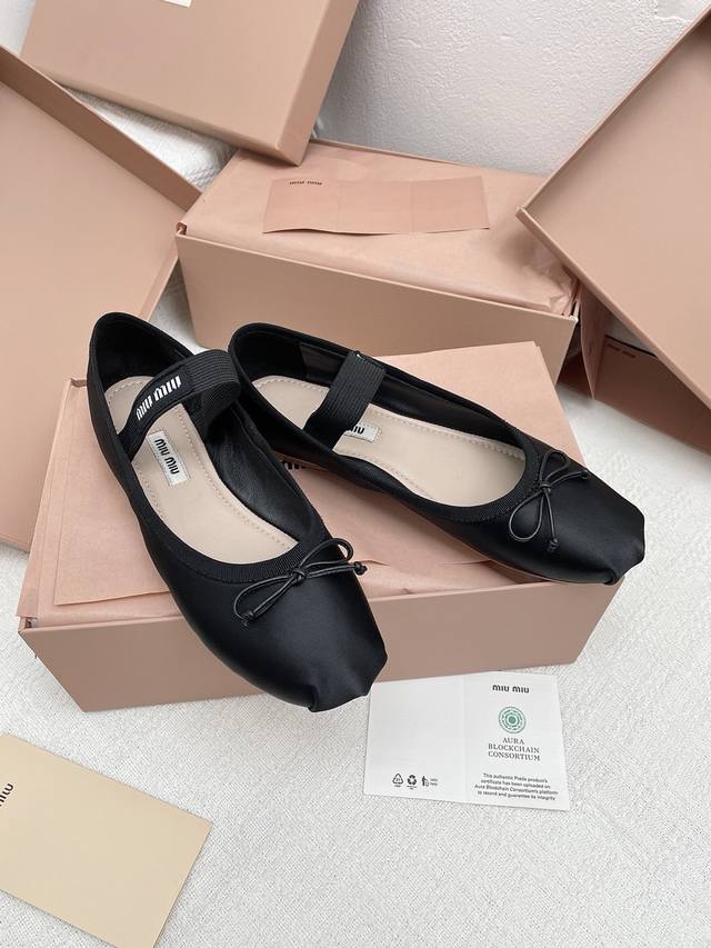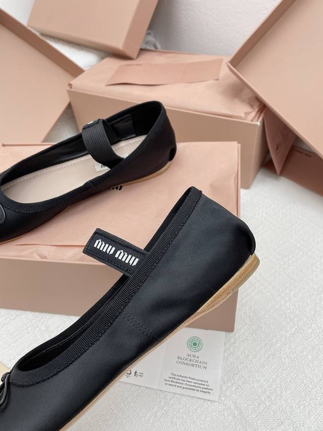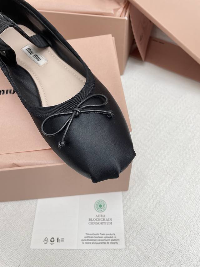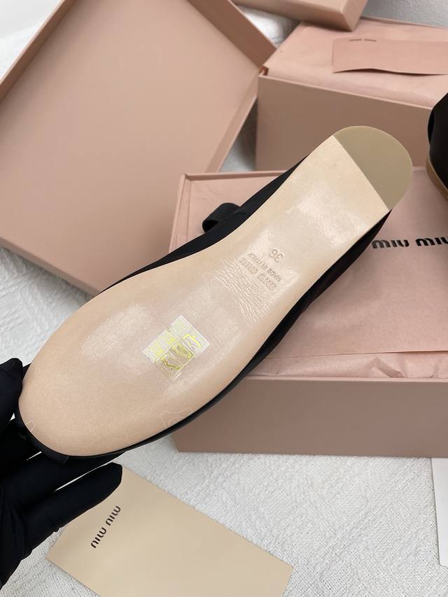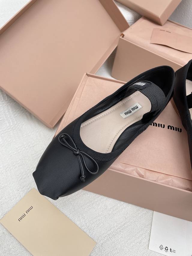 缎面 东莞代购级Miu Miu 缪缪女士蝴蝶结装饰缎面芭蕾舞鞋平底单鞋
