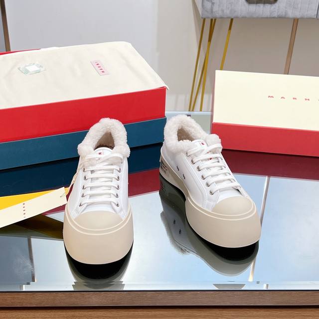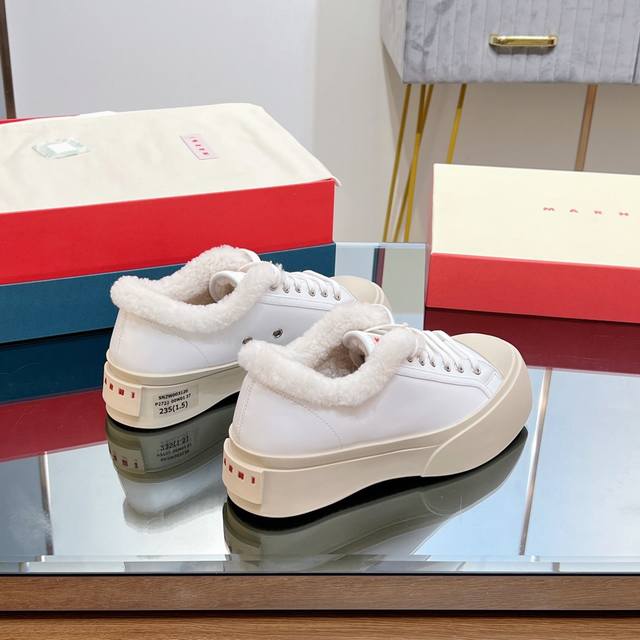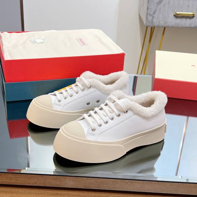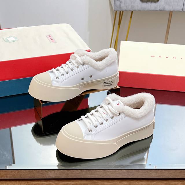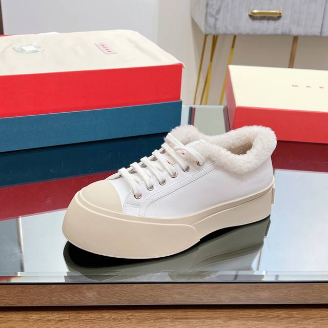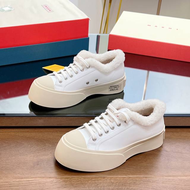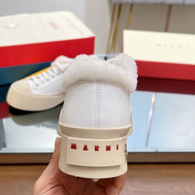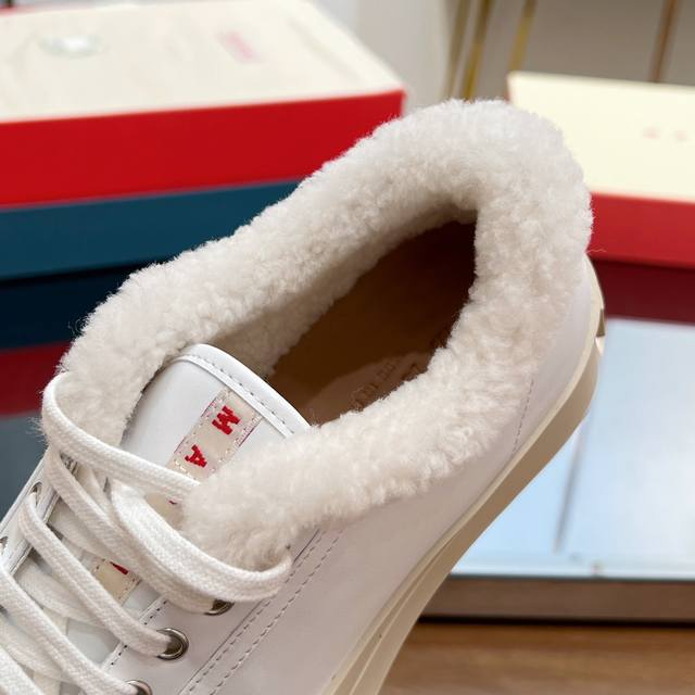 Marni玛尼毛毛鞋 赵露思同款大头鞋女丑萌魔术贴系带厚底 羊皮毛一体单鞋