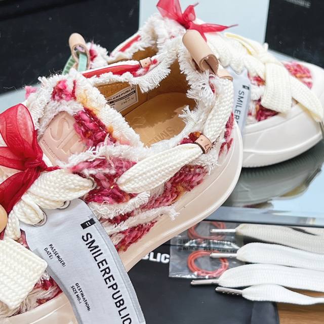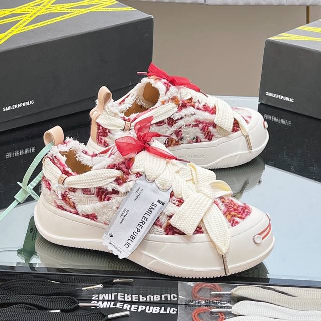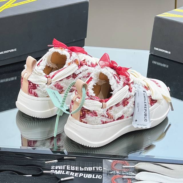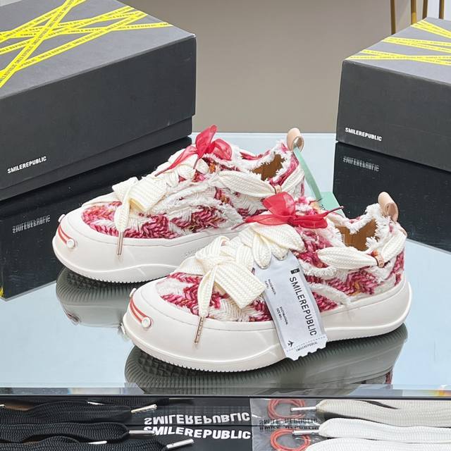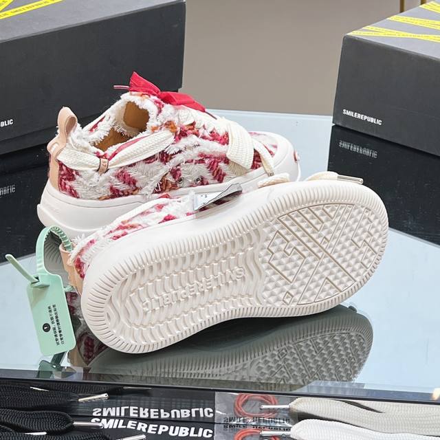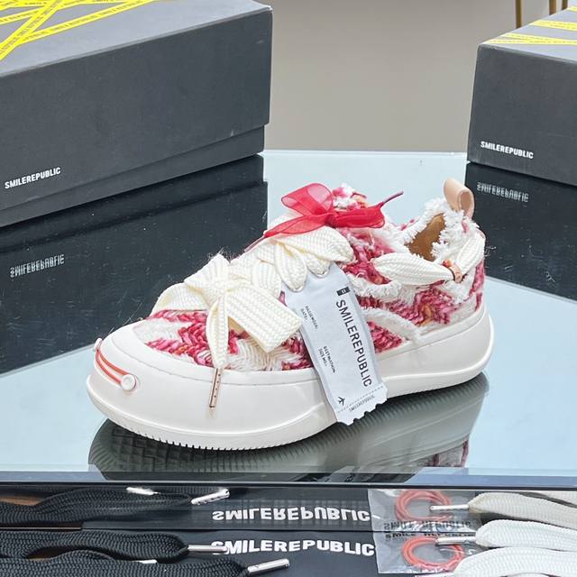 网红王炸大爆款情侣休闲系列 大头鞋 乞丐鞋运动鞋 Smlierepublic来源于美国品牌,今天流行元素,絮絮花边工艺,大宽鞋带蝴蝶结纹理形式呈现,大头鞋底外形颇具复古感,搭配起来带来极强的视觉冲击感的同时! 也代表了22最新流行的标志性配色鞋身侧