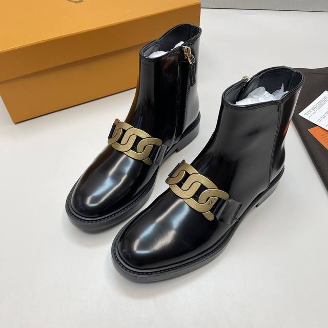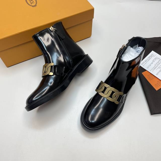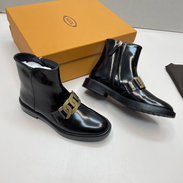 莞产顶级版本 专柜级 Tods 金属麻花扣短靴 尺码:35 36 37 38 39 高级质是感可以看得见的 !鞋面开边珠 大厂工出品,细节做工那些都有保证,还那