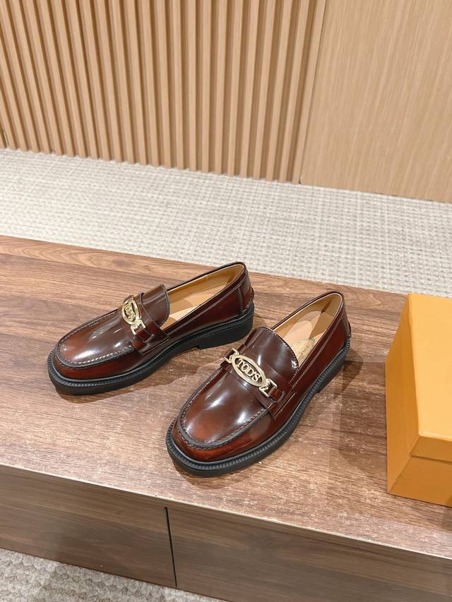 莞产 '# 托德斯今年新出的这双真的很经典,款式大方硬朗,鞋面金环摩登时髦