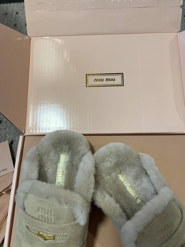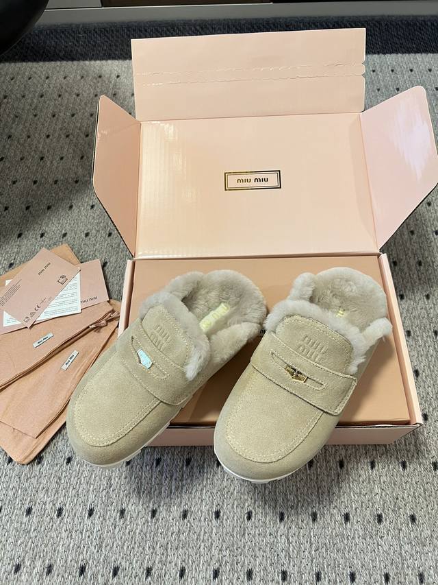Miu Mi* 25Ss秀款金币包头毛毛鞋