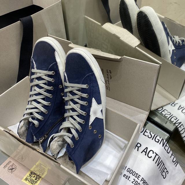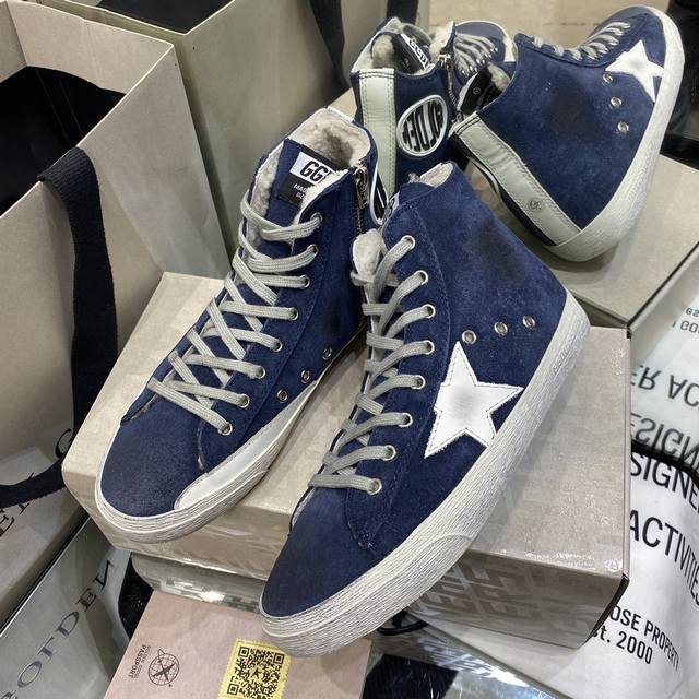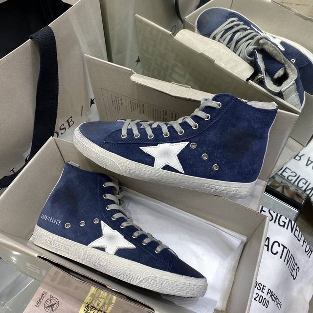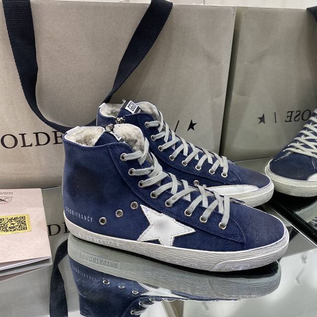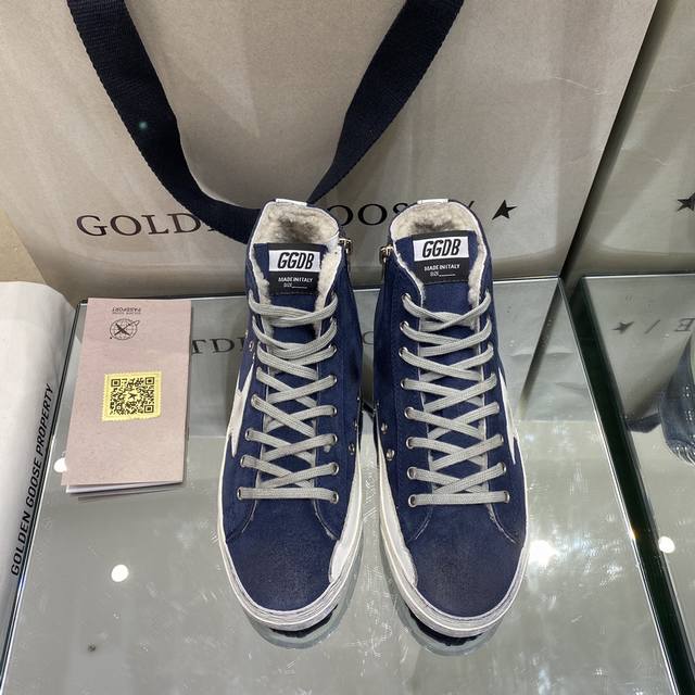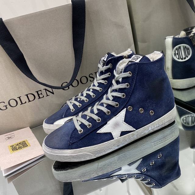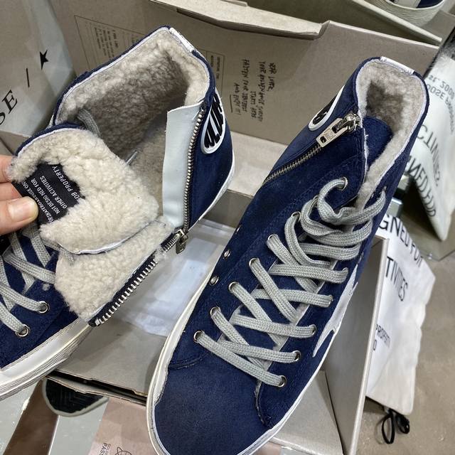 深蓝高帮羊卷毛脏脏鞋情侣款1.1高版本.低端勿扰!小红书爆款ggdb小脏鞋羊毛里脏脏鞋情侣款golden Gse Deluxe Brand Super Tar