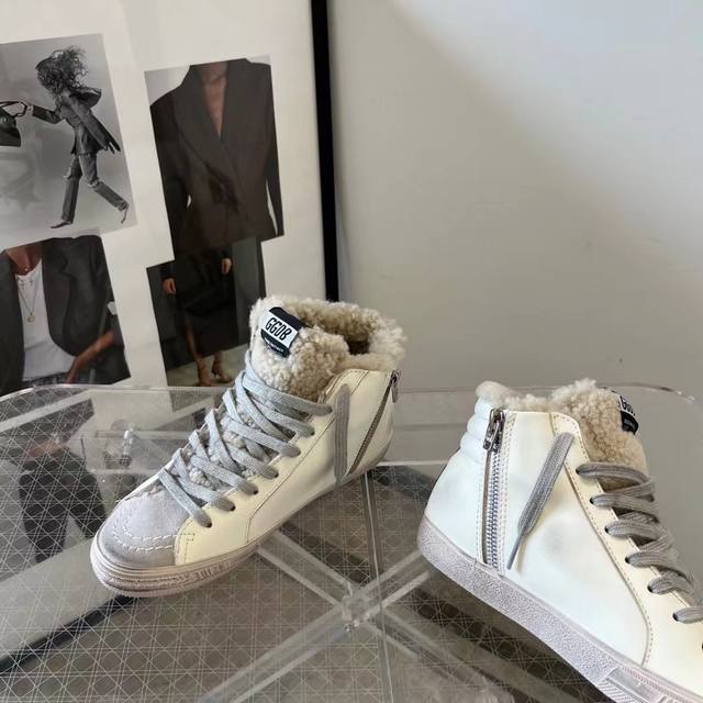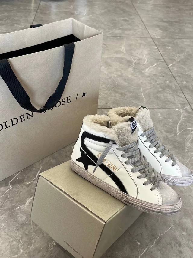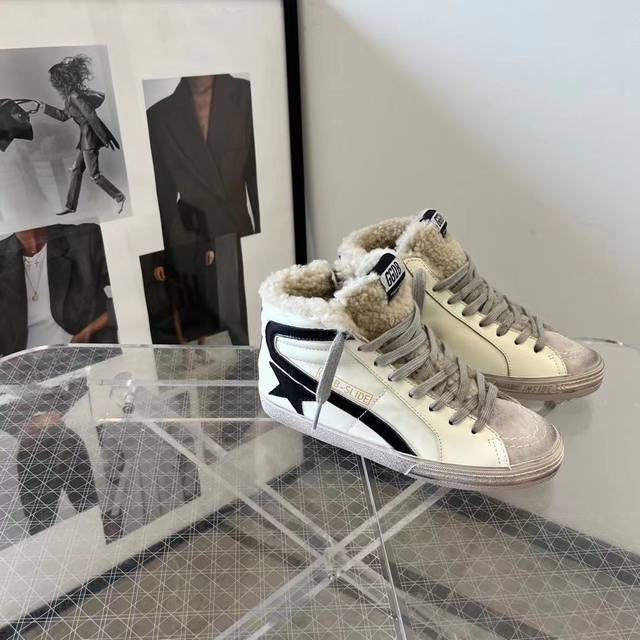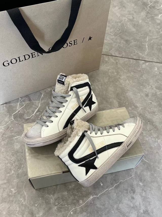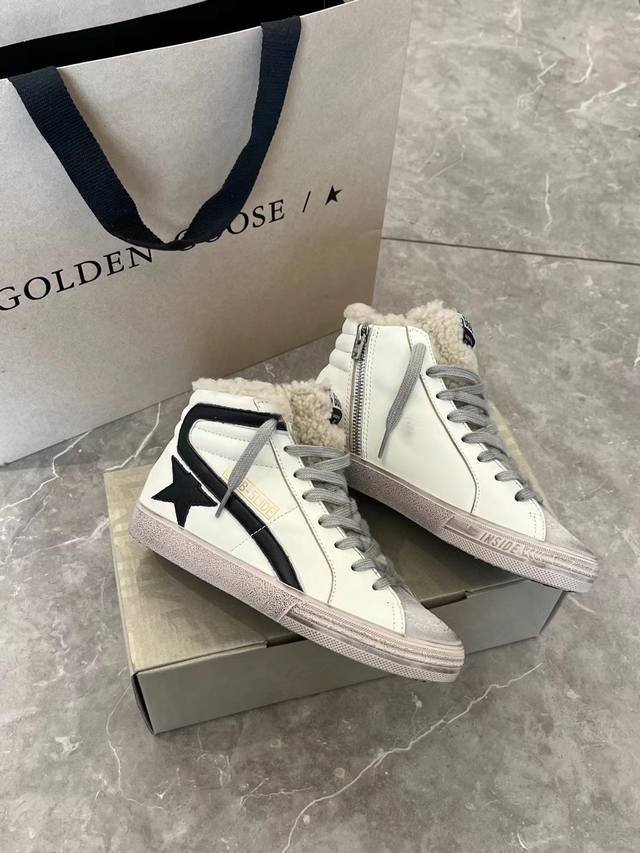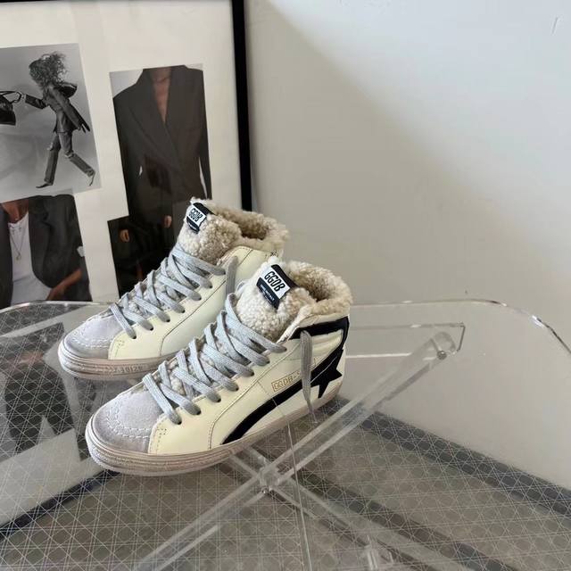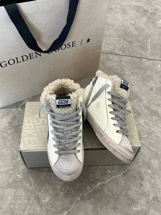 高帮黑星羊毛里情侣款顶级高版本专柜新包装ggdb Slide小脏鞋羊毛里情侣款黄金鹅星星羊羔毛毛毛鞋golden Gse Deluxe Brand Super Tar