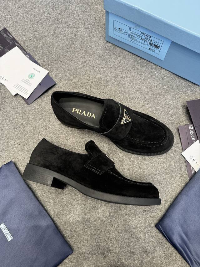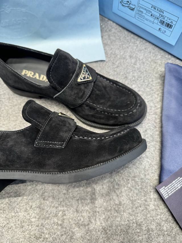 prad*Ss24新款经典版面麂面乐福鞋