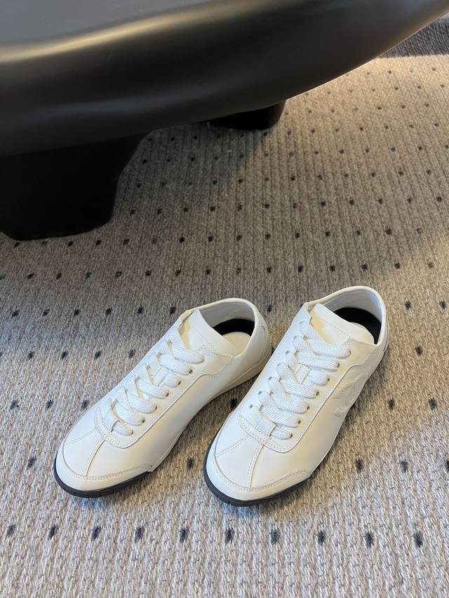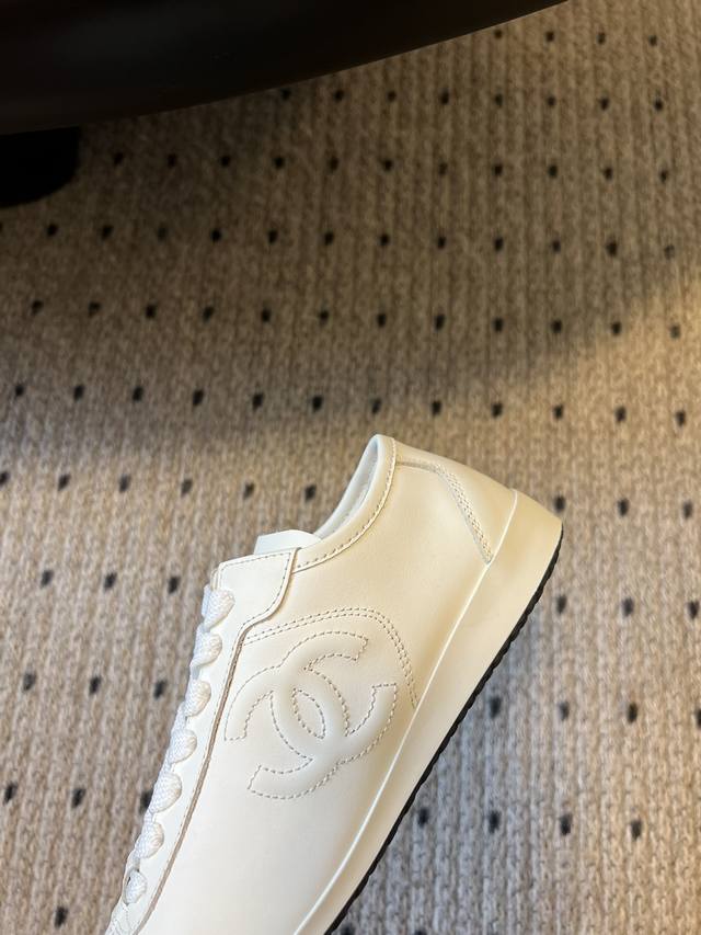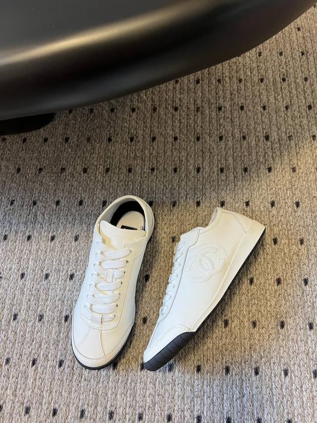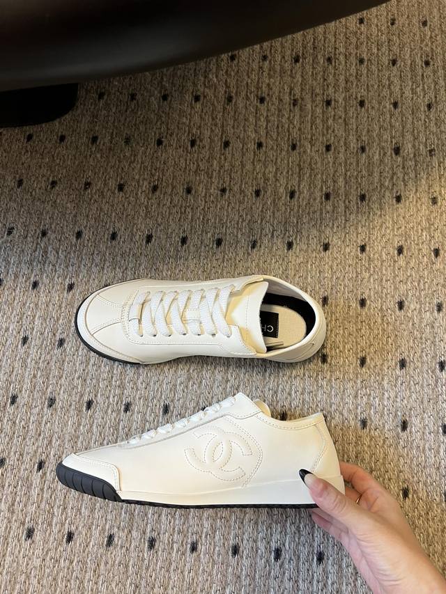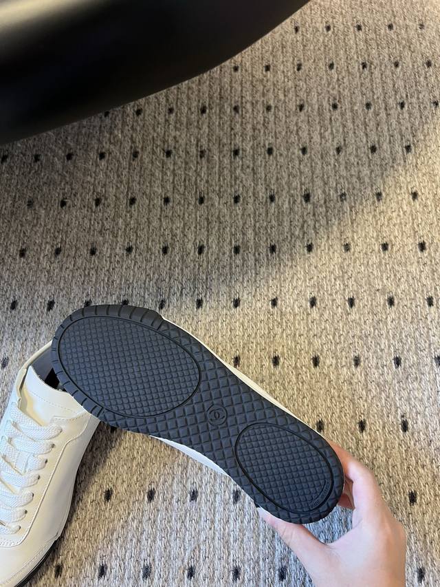 小香新款平底棒球鞋 秋款运动鞋 鞋型秀气精致非常修脚,很chill很百搭!油纳牛皮鞋面融入品牌双c Logo细节满满, 小牛材质超软糯,脚感舒适度满分