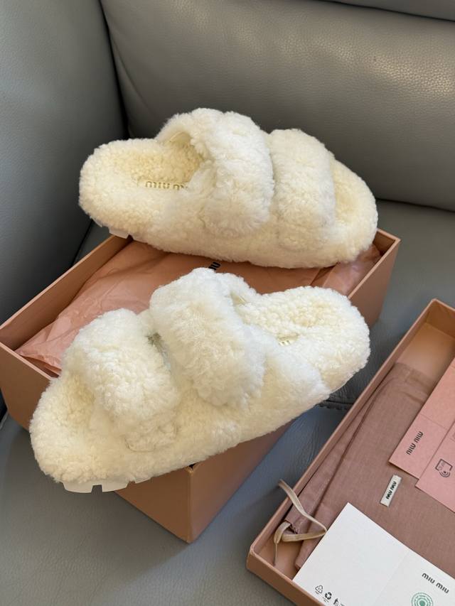 / 顶级品质 配飞机盒*10 Miumiu Fw25 New Arrival~ 秋冬新款羊毛拖鞋 搭扣款羊毛拖鞋,秋冬闭眼入的单品 好穿好看,保暖又洋气,且不挑脚型