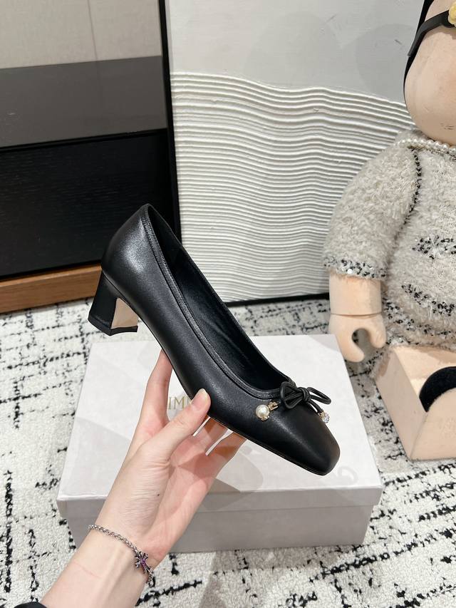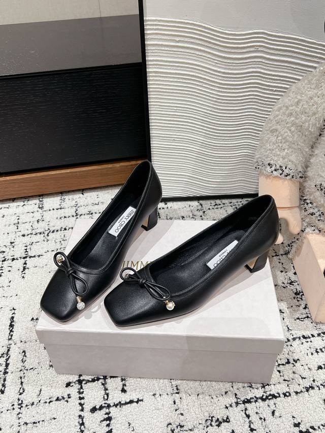 吉米周jc经典珍珠粗跟玛丽珍鞋