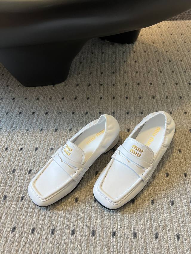 Miumiu秋冬新款粗m平底金币乐福鞋