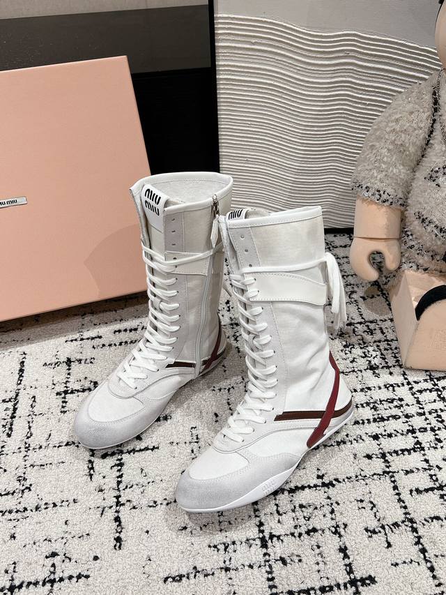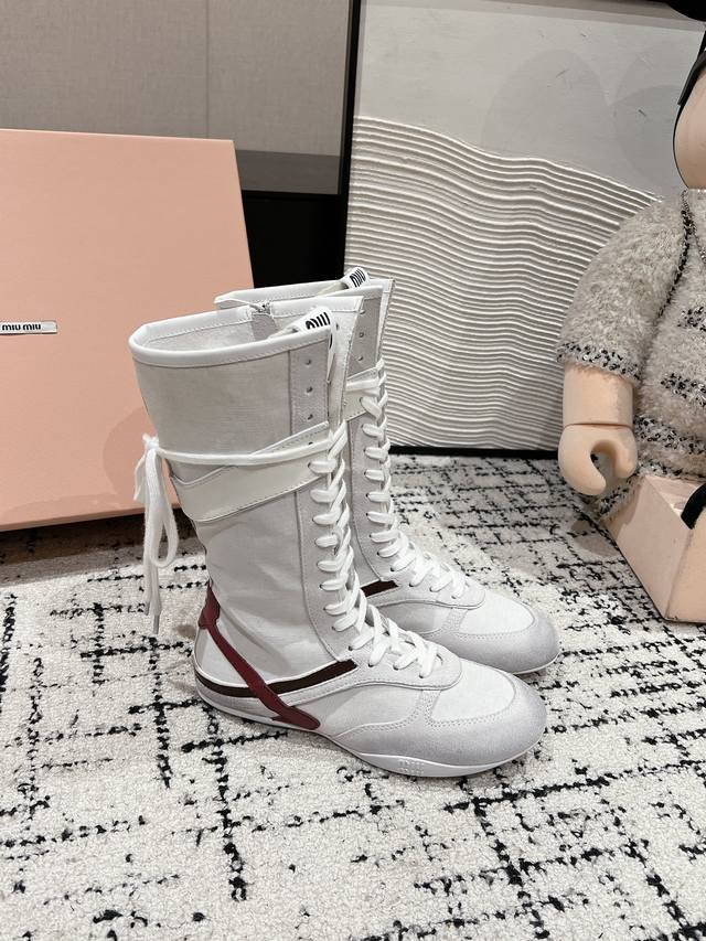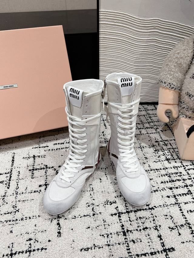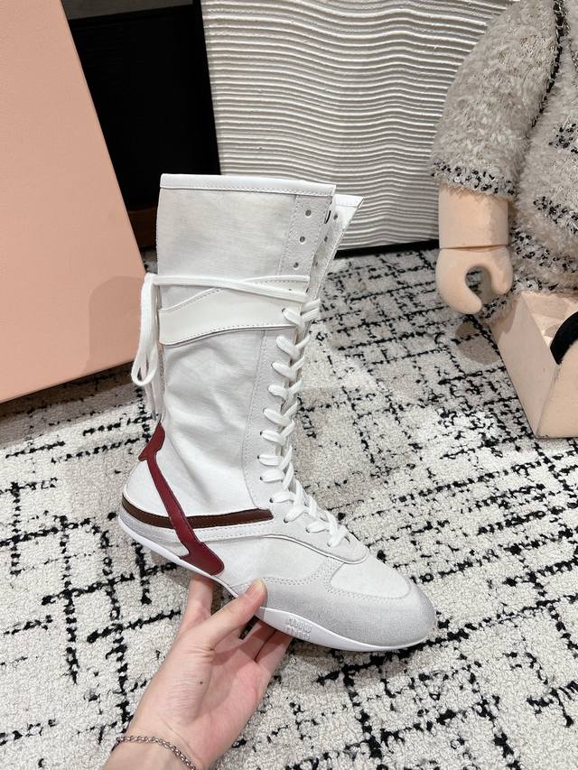 顶级品质 Miumiu Ss24 New Arrival~ Miu家2024秋冬新款运动靴新品 设计理念源于拳击靴和芭蕾舞鞋两者的结合, 动感而柔美~体现了纯正