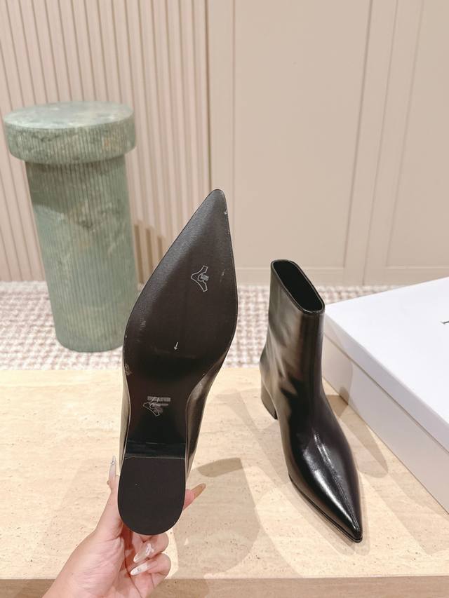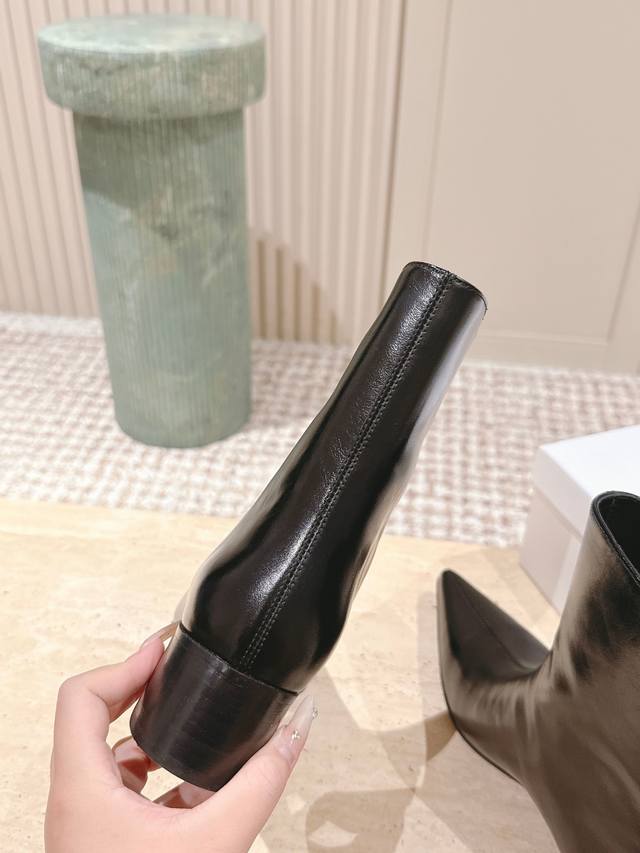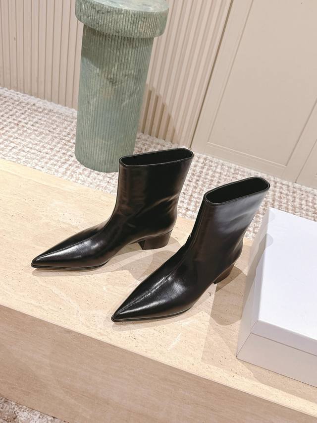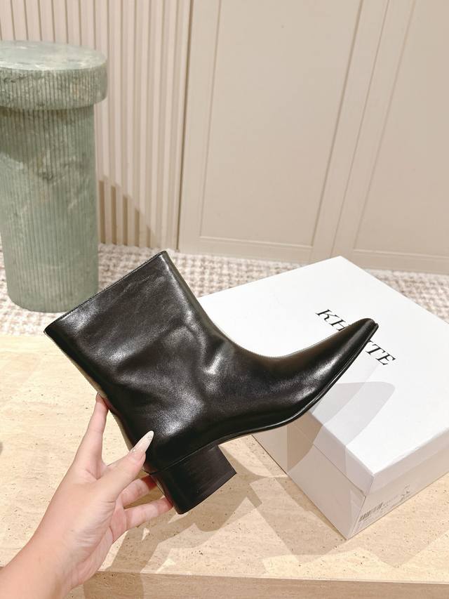 顶级版本:不带拉链 :Khaite 25秋冬新款尖头短靴 小粗跟搭配件头,气质又好穿 靴口有点斜切设计,新颖不单调! 好看好看,也很好穿搭,爱了爱 后拉链设计
