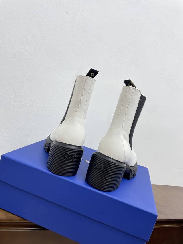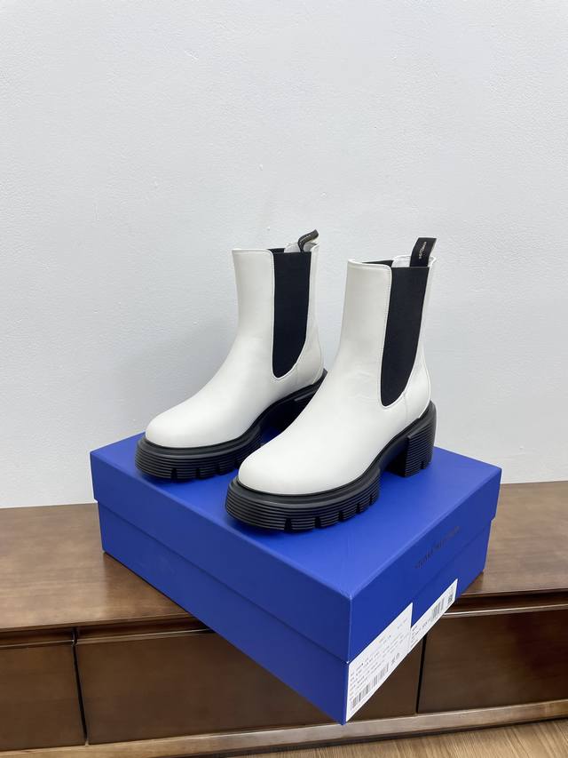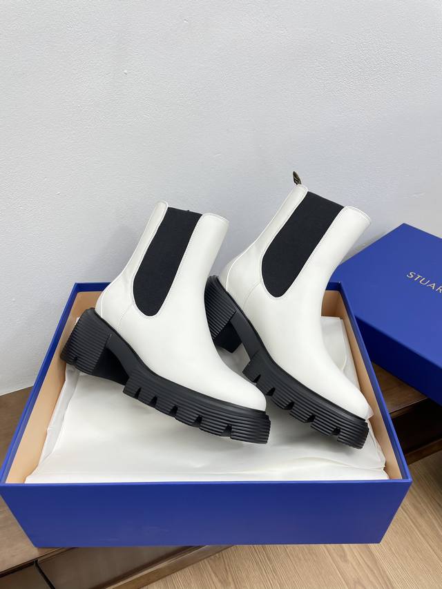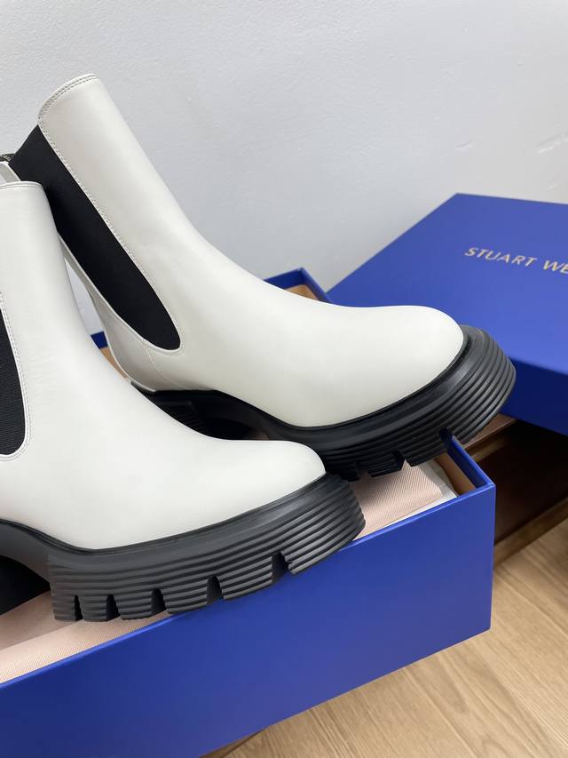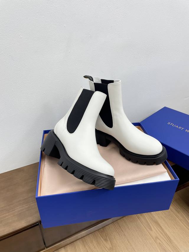 顶级版本代购级stuart Weitzman 粗跟厚底切尔西短靴