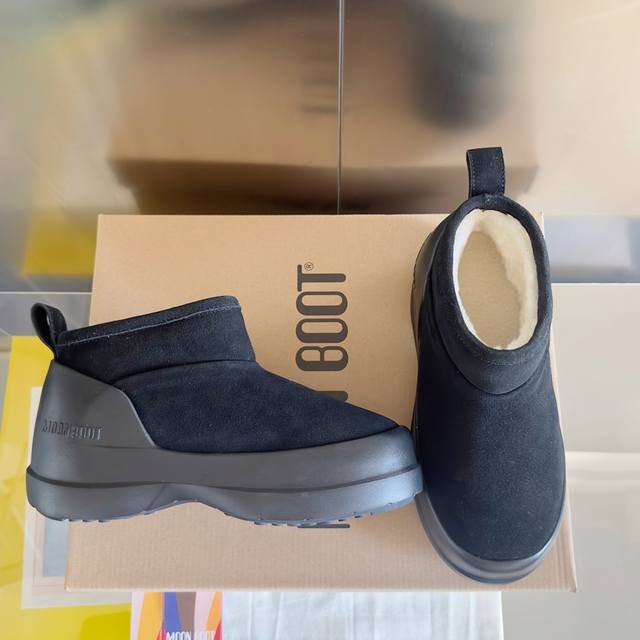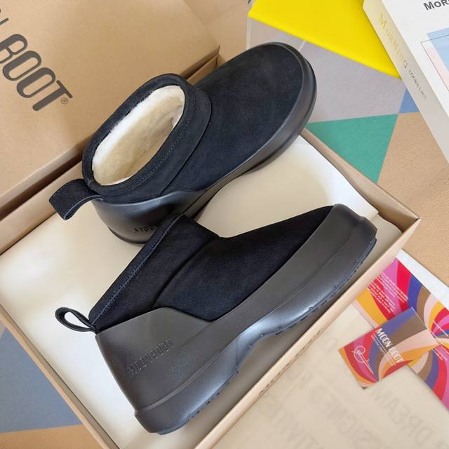 Moon Boot最新款luna 羊皮毛 厚底 系带 一脚蹬 雪地靴 短靴 棉靴