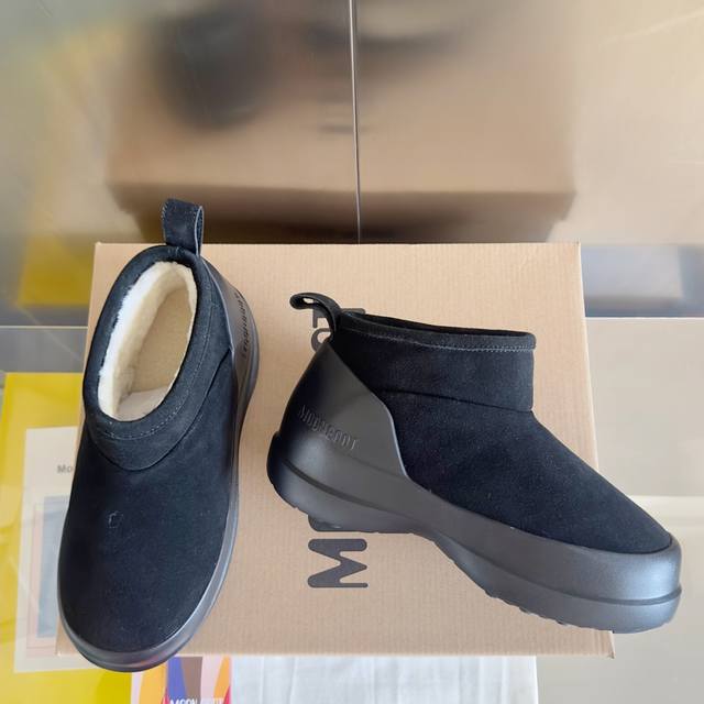顶级版本:女款 Moon Boot最新款luna 羊皮毛 厚底 系带 一脚蹬 雪地靴 短靴 棉靴 原版购入开发 做货 Luna羊皮毛 雪地靴 没有左右对错之分