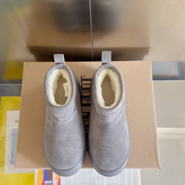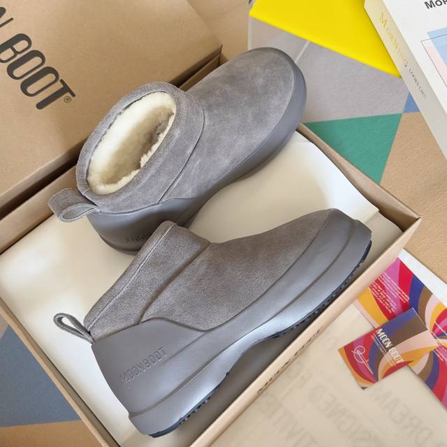 Moon Boot最新款luna 羊皮毛 厚底 系带 一脚蹬 雪地靴 短靴 棉靴