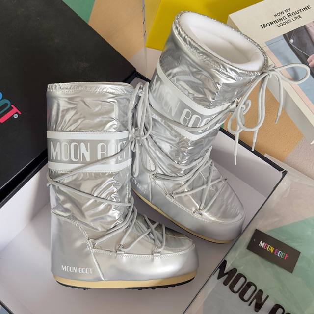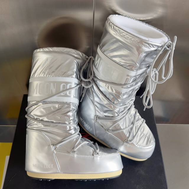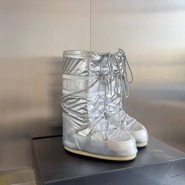 原版购入开发 做货 这款moon Boot 月亮靴icon Nylon尼龙高筒雪地靴 采用海绵材质将脚部全面包裹,防水泼溅,橡胶鞋底防滑,鞋底独特吸盘,强劲抓地,提供稳定性能。男女同款,没有左右对错之分 标志拼接印花,鞋体饰有银色金属鞋眼