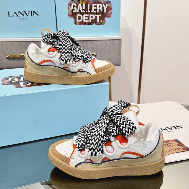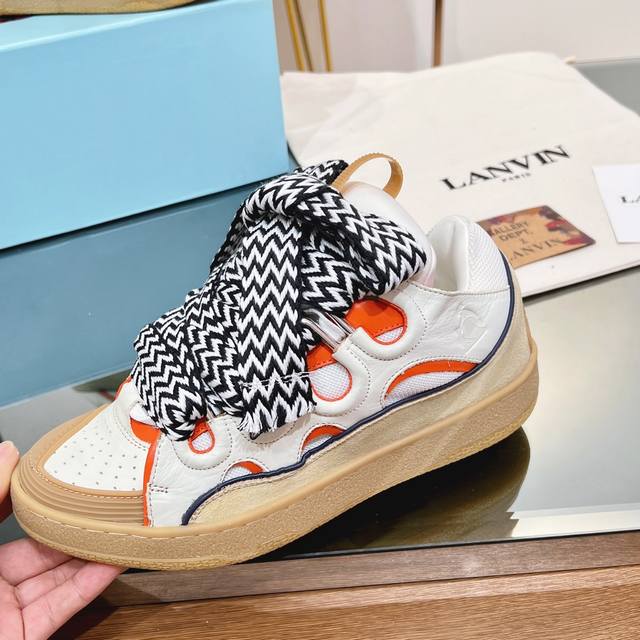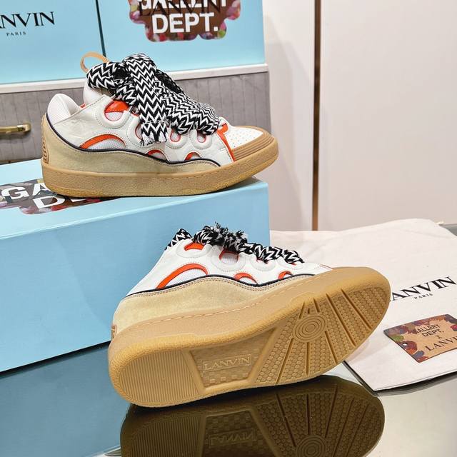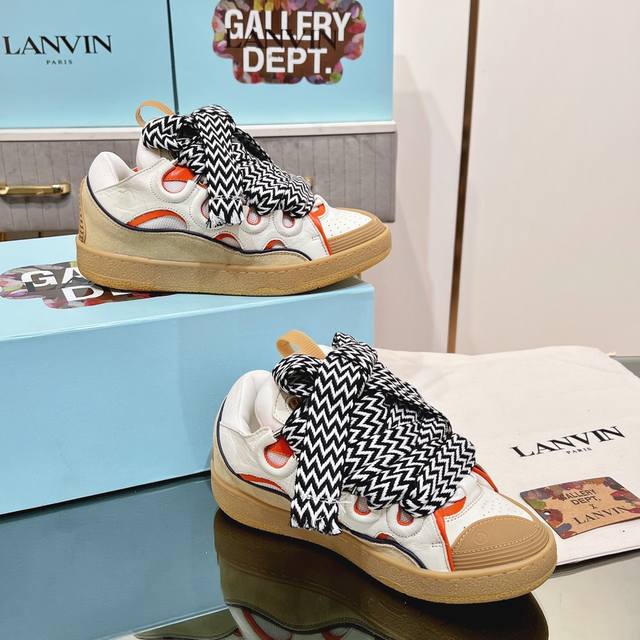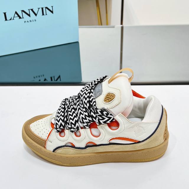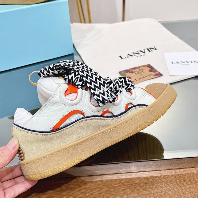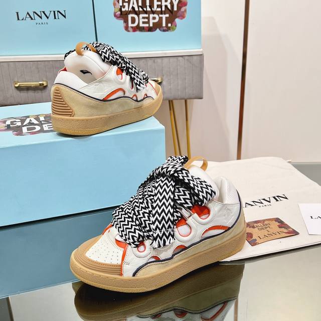Lanvin浪凡情侣款curb运动鞋拼接系带低帮时尚板鞋,涂鸦、泼墨面包鞋滑板鞋高帮鞋