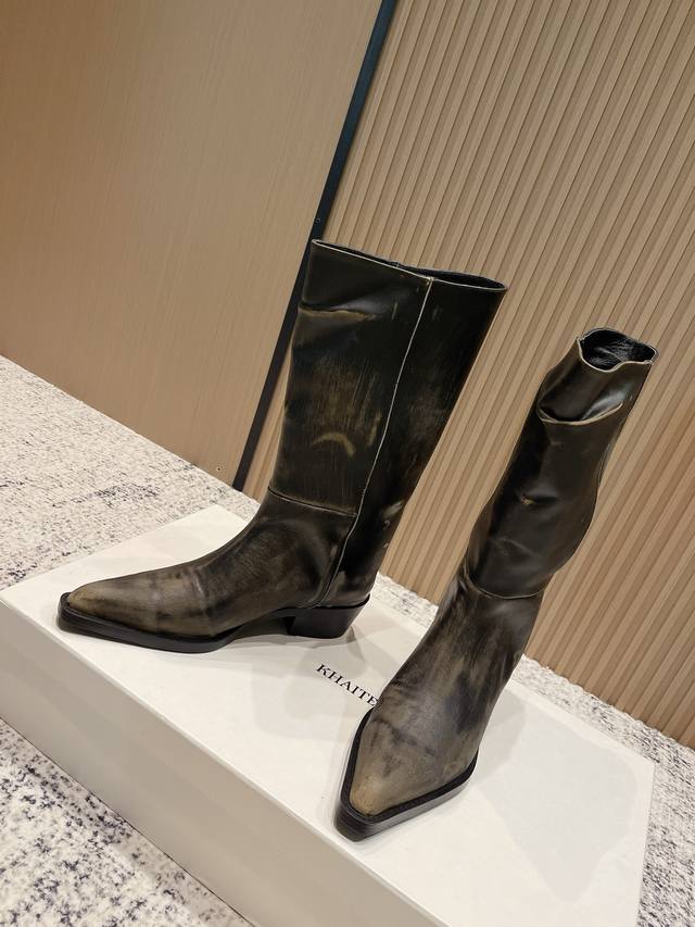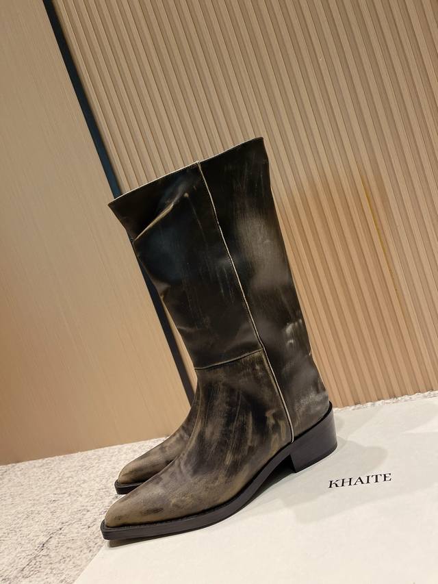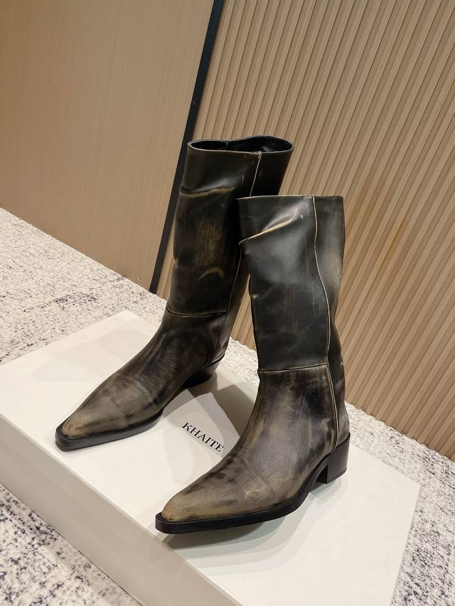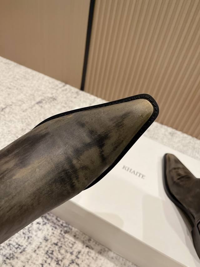 小众潮牌Khaite秋冬最新款复古尖头时装长靴