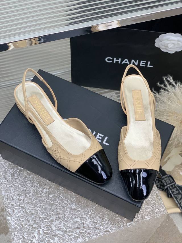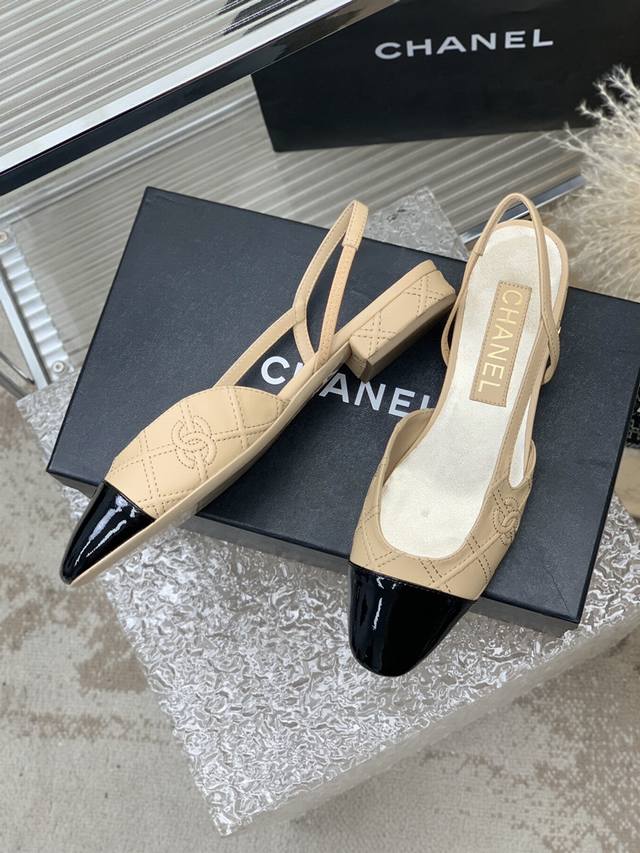 小香slingback经典系列拼接粗跟凉鞋单鞋