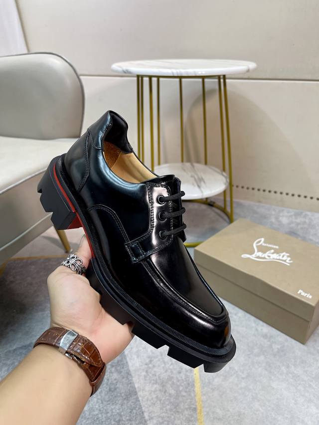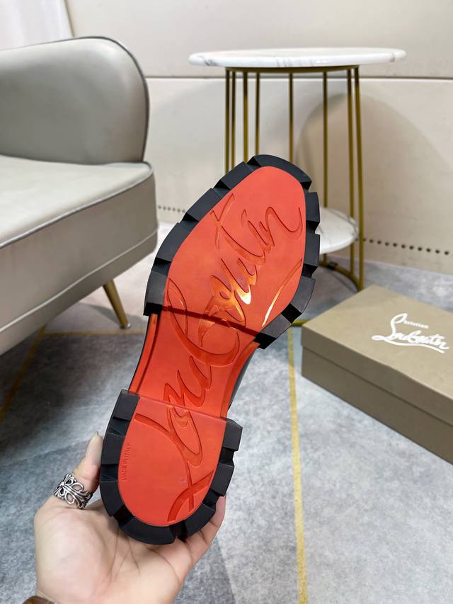 Cl男士休闲低帮鞋,时尚男士休闲鞋。鞋面进口优质牛皮,设计感十足。水染牛皮内里垫脚,舒适透气,更好的包裹双脚。原版耐磨防滑组合红色大底。