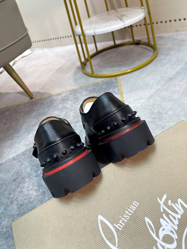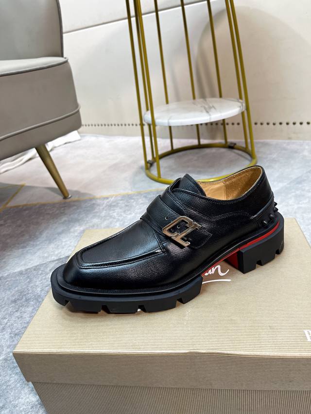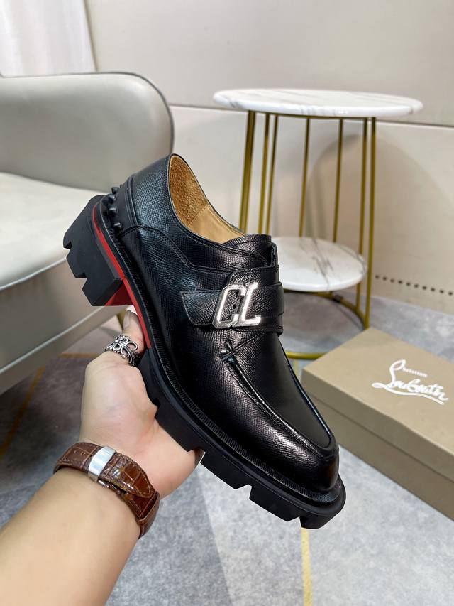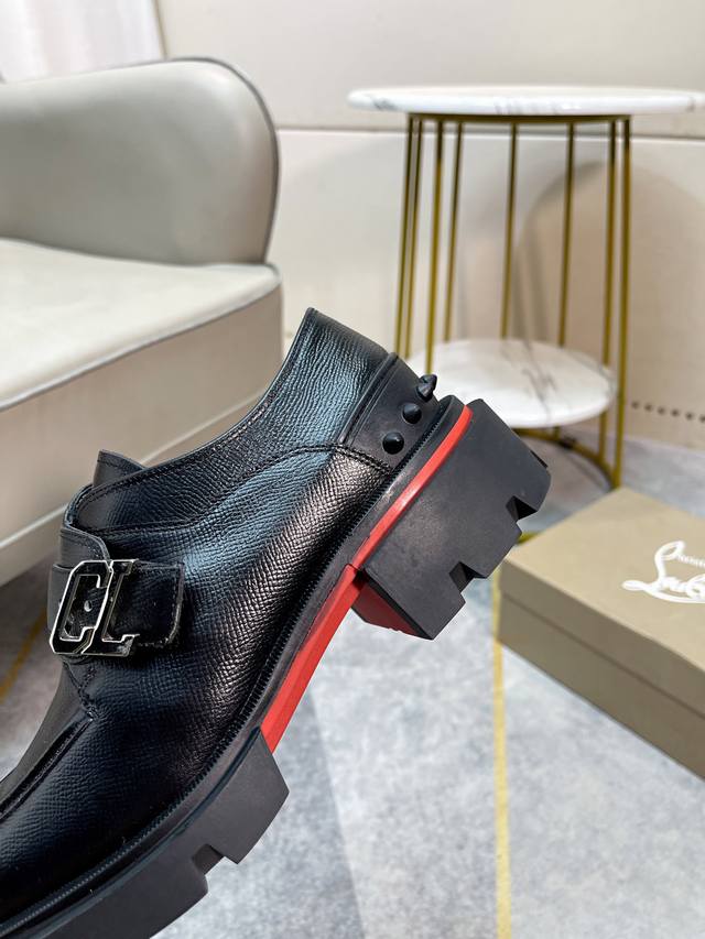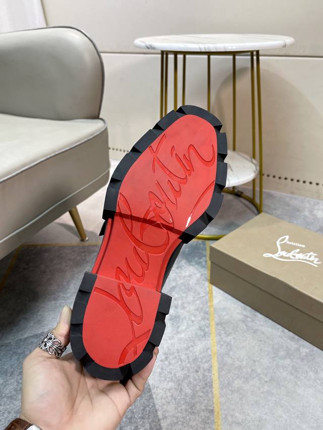 Cl男士休闲低帮鞋,时尚男士休闲鞋。鞋面进口优质牛皮,设计感十足,鞋面品牌金属搭扣装饰,水染牛皮内里垫脚,舒适透气,更好的包裹双脚。原版耐磨防滑组合红色大底。