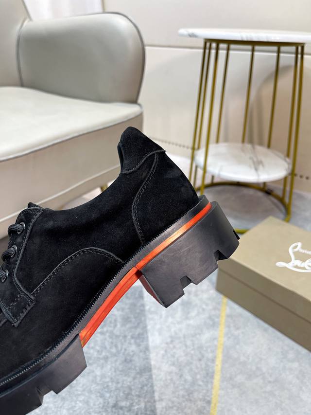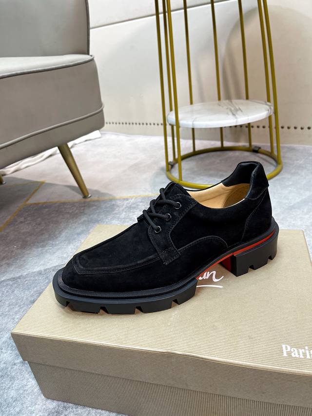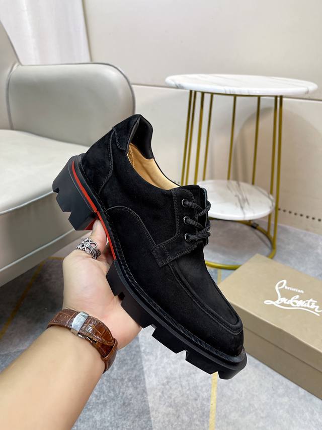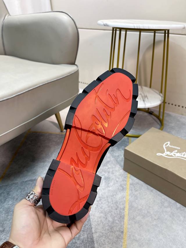 Cl男士休闲低帮鞋,时尚男士休闲鞋。鞋面进口优质磨砂牛皮,设计感十足。水染牛皮内里垫脚,舒适透气,更好的包裹双脚。原版耐磨防滑组合红色大底。