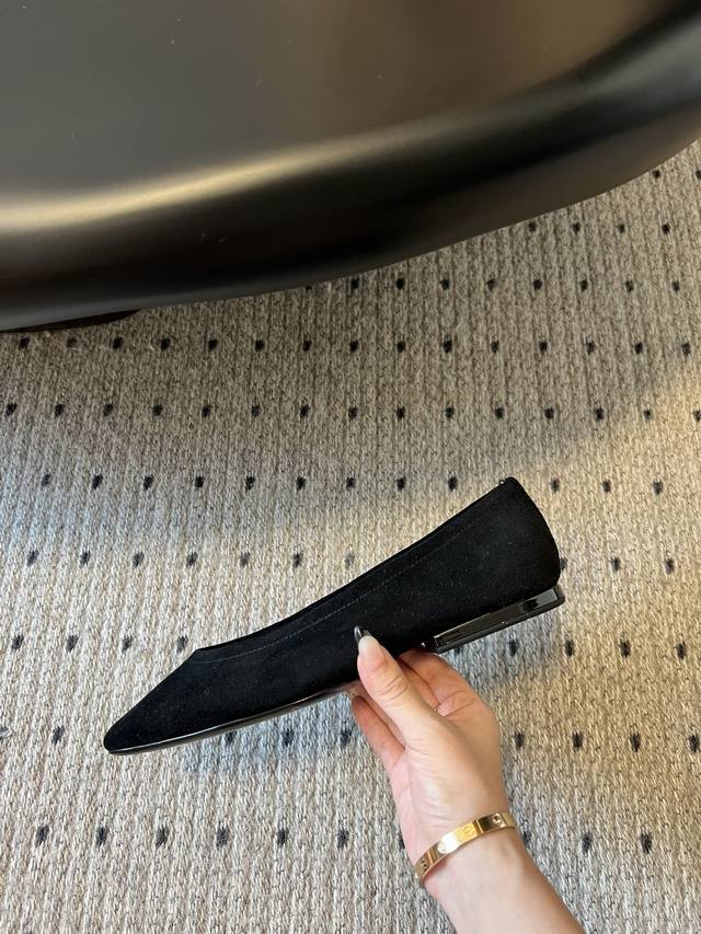 Lp女士芭蕾舞鞋 这款rebecca 芭蕾舞平底鞋采用麂皮革制成,略微圆浑的鞋头令其别具一格 经过植处理的皮革呈现半亮面又十分平滑的细腻纹理,手感柔软怡人 百搭的设计风格