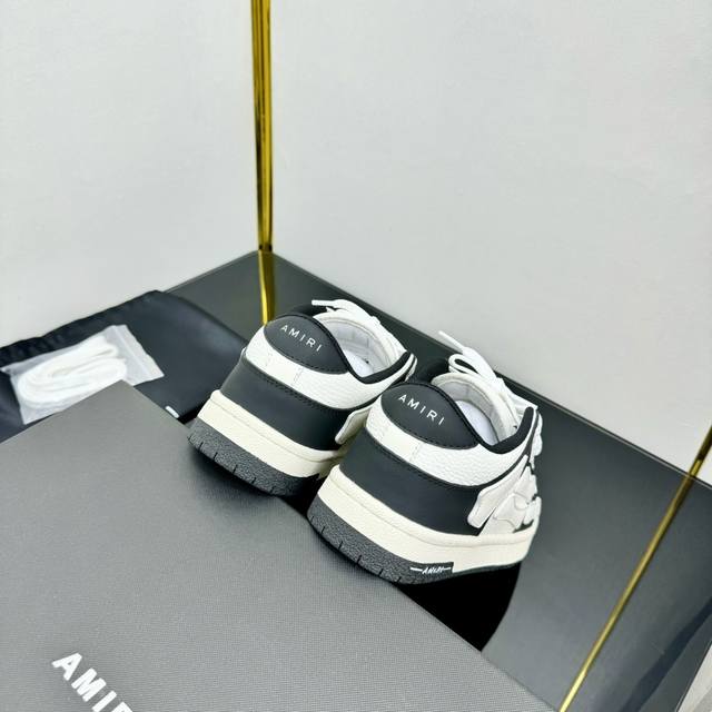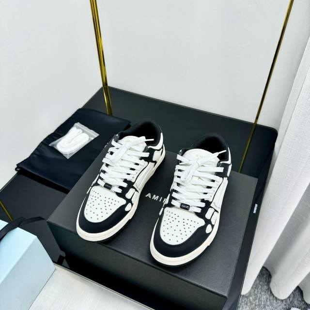 Amiri骨头鞋情侣款,日常休闲必备单品,情侣鞋。适合各种场合!Amiri骨头鞋凭借鞋侧颇具独到风格的骨头图案,充满酷感又百搭!杨幂,陈伟霆等超多明星出席节目或私底下都爱穿,王一博在综艺节目:这就是街舞多次穿着骨头鞋出镜,抢尽风头!帅气又百搭的这一款,快来一起走骨头风吧!面料优选丝绸牛皮,透气网布内里,原版橡胶大底,非硬绑绑的tpu大底,舒适耐磨!女款35--40.男款39--45.