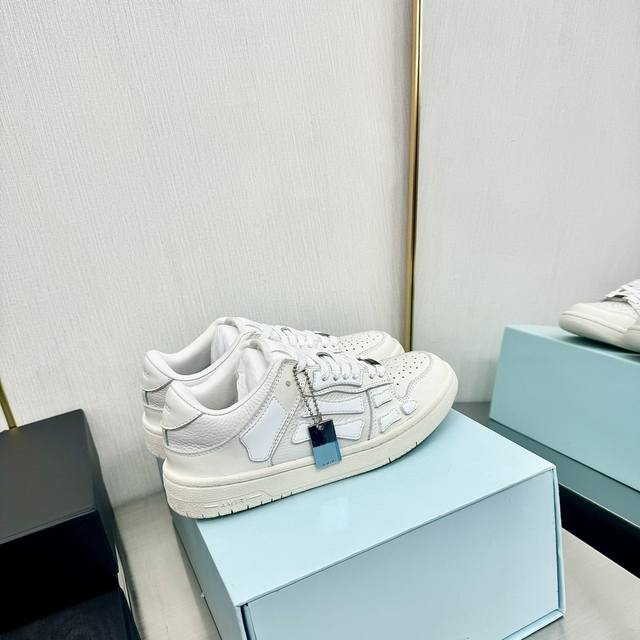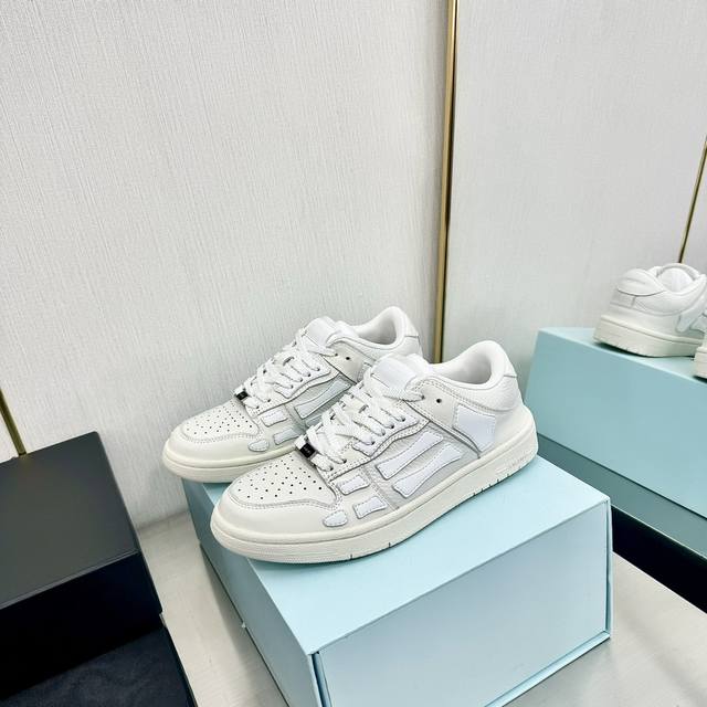 Amiri骨头鞋情侣款,日常休闲必备单品,情侣鞋。适合各种场合!Amiri骨头鞋凭借鞋侧颇具独到风格的骨头图案,充满酷感又百搭!杨幂,陈伟霆等超多明星出席节目或私底下都爱穿,王一博在综艺节目:这就是街舞多次穿着骨头鞋出镜,抢尽风头!帅气又百搭的这一款,快来一起走骨头风吧!面料优选丝绸牛皮,透气网布内里,原版橡胶大底,非硬绑绑的tpu大底,舒适耐磨!女款35--40.男款39--45.