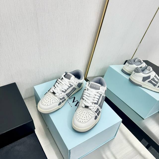 Amiri骨头鞋情侣款,日常休闲必备单品,情侣鞋。适合各种场合!Amiri骨头鞋凭借鞋侧颇具独到风格的骨头图案,充满酷感又百搭!杨幂,陈伟霆等超多明星出席节目或私底下都爱穿,王一博在综艺节目:这就是街舞多次穿着骨头鞋出镜,抢尽风头!帅气又百搭的这一款,快来一起走骨头风吧!面料优选丝绸牛皮,透气网布内里,原版橡胶大底,非硬绑绑的tpu大底,舒适耐磨!女款35--40.男款39--45.